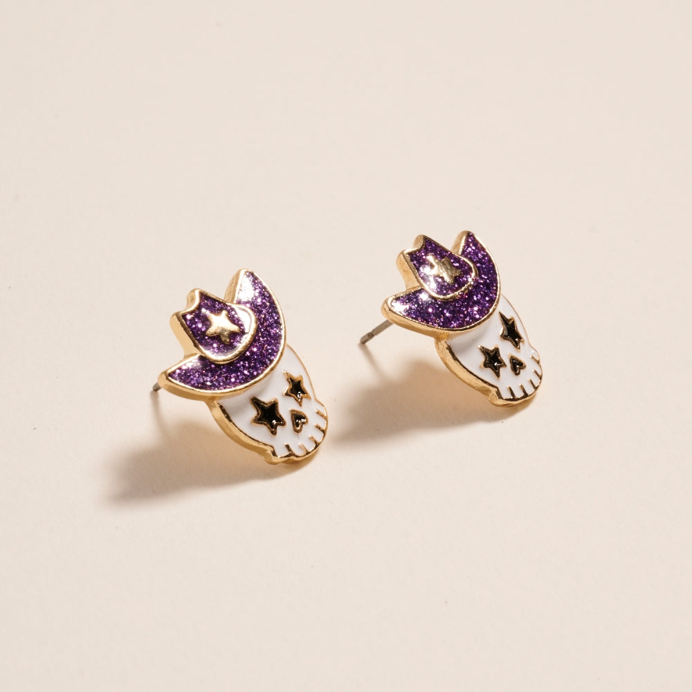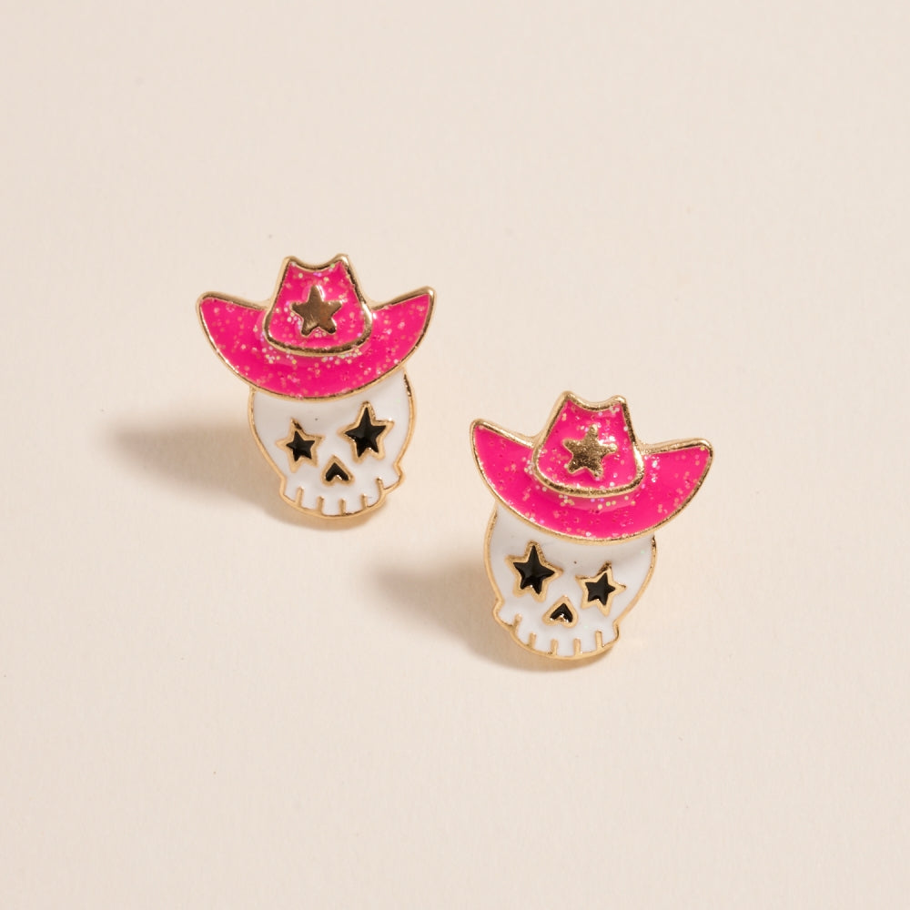 Cowboy Skeleton Skull Post Earrings for Halloween