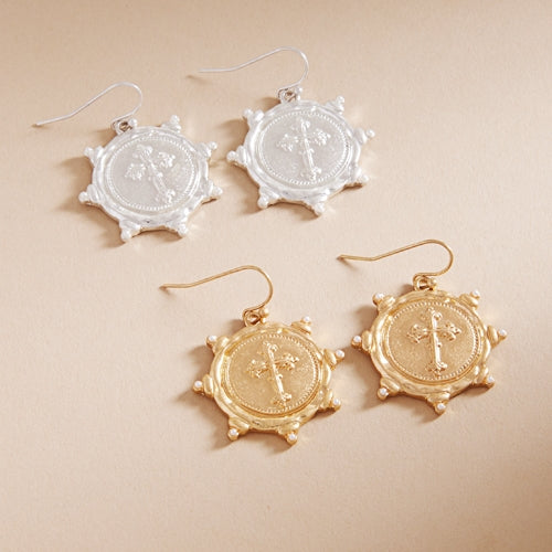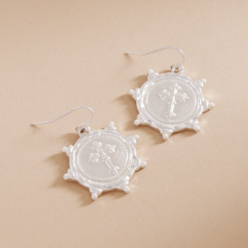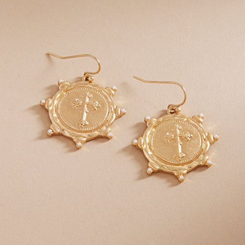 Cross Intaglio Metal Brass Hook Earrings