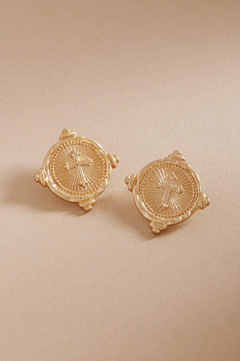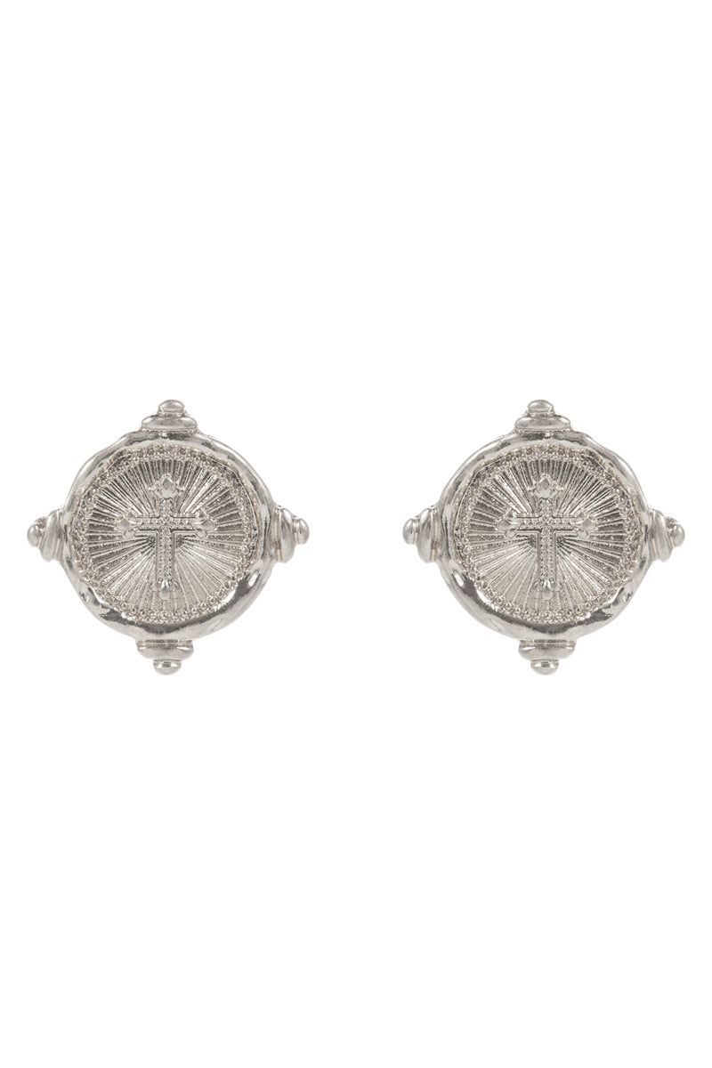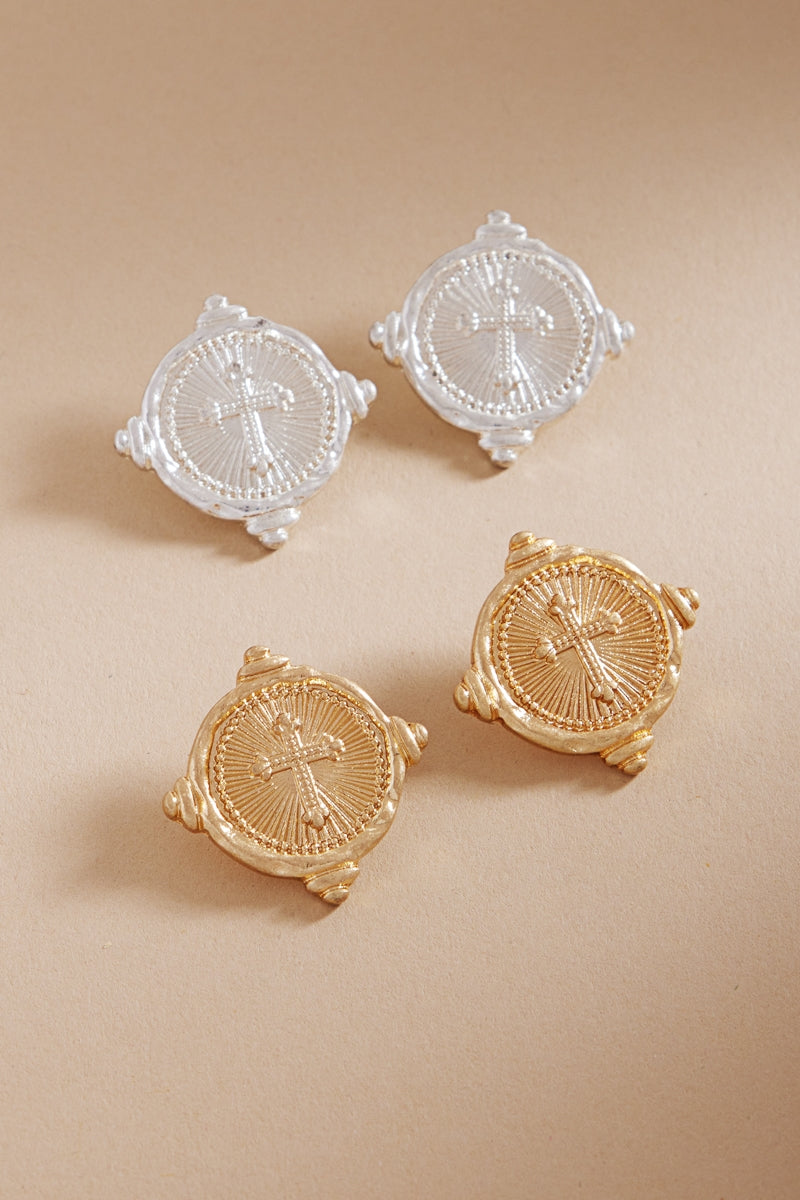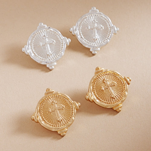 Cross Intaglio Metal Titanium Post Earrings