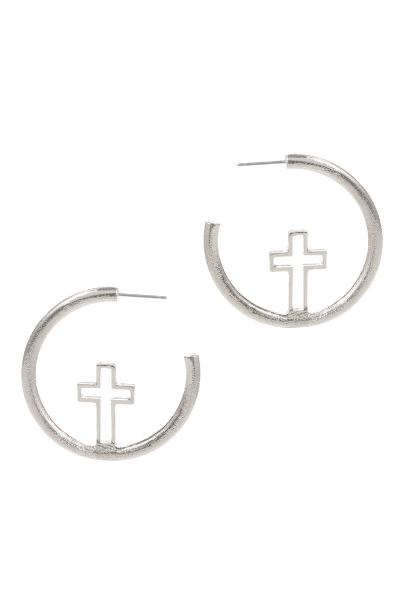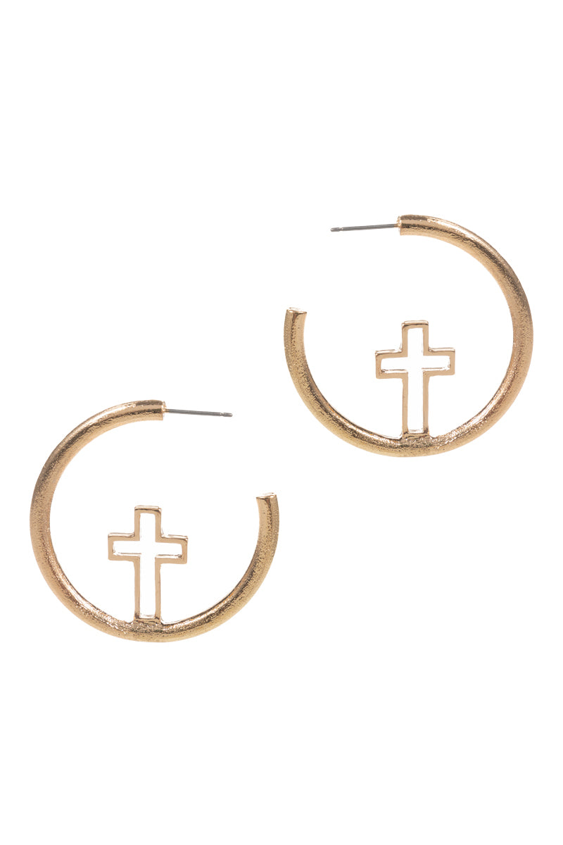 These 1.5 inch cross shaped cross hoop earrings add a unique touch to any outfit. Made with high quality materials, they are both durable and stylish. With their versatile design, they can be worn for any occasion. Elevate your look and stand out with these must-have earrings.
