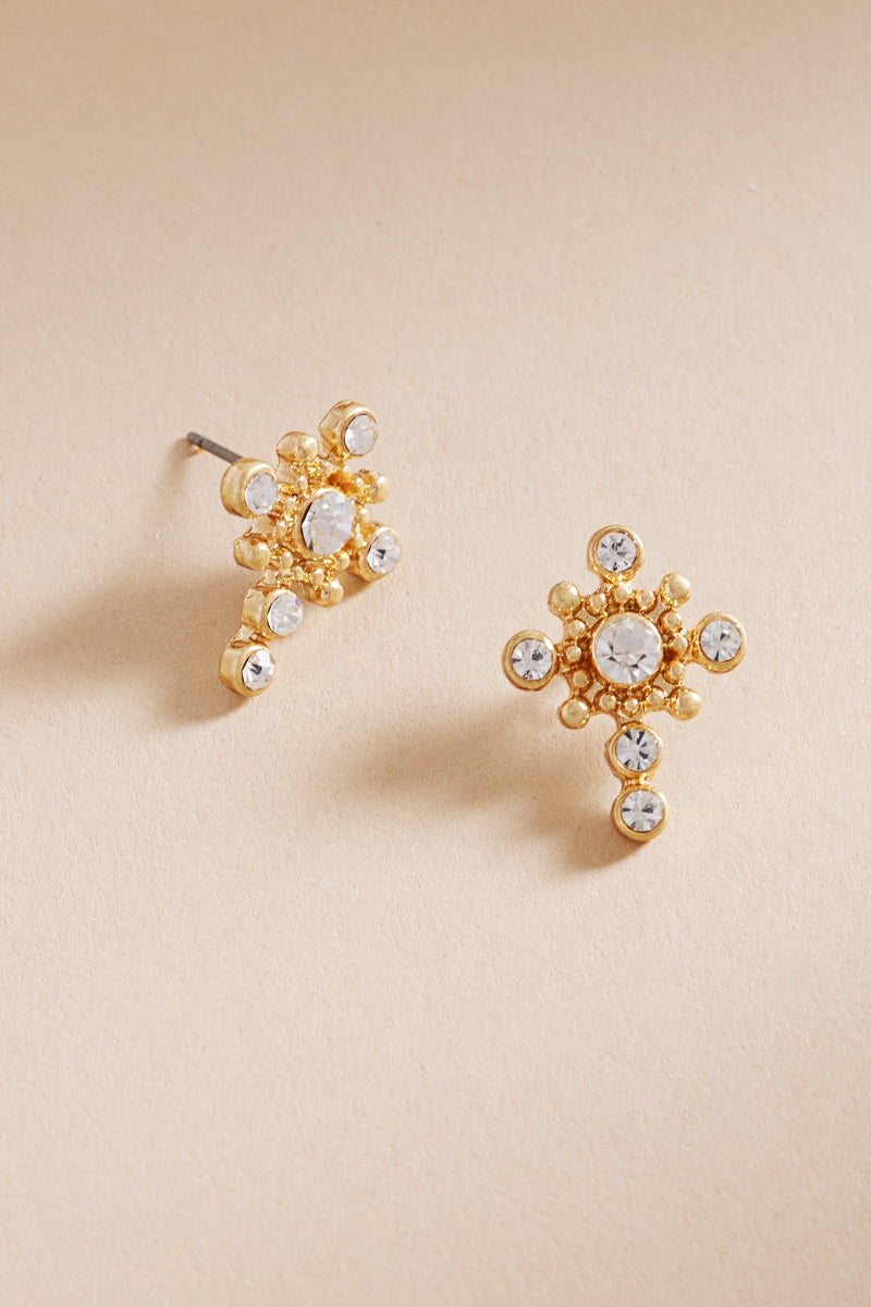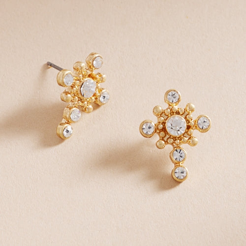 Add a subtle touch of elegance to your outfit with these hypoallergenic 0.75 inch cross earrings. The clear stone paved design adds a hint of sparkle, while the titanium post ensures the earrings are safe for sensitive ears. Perfect for any occasion.