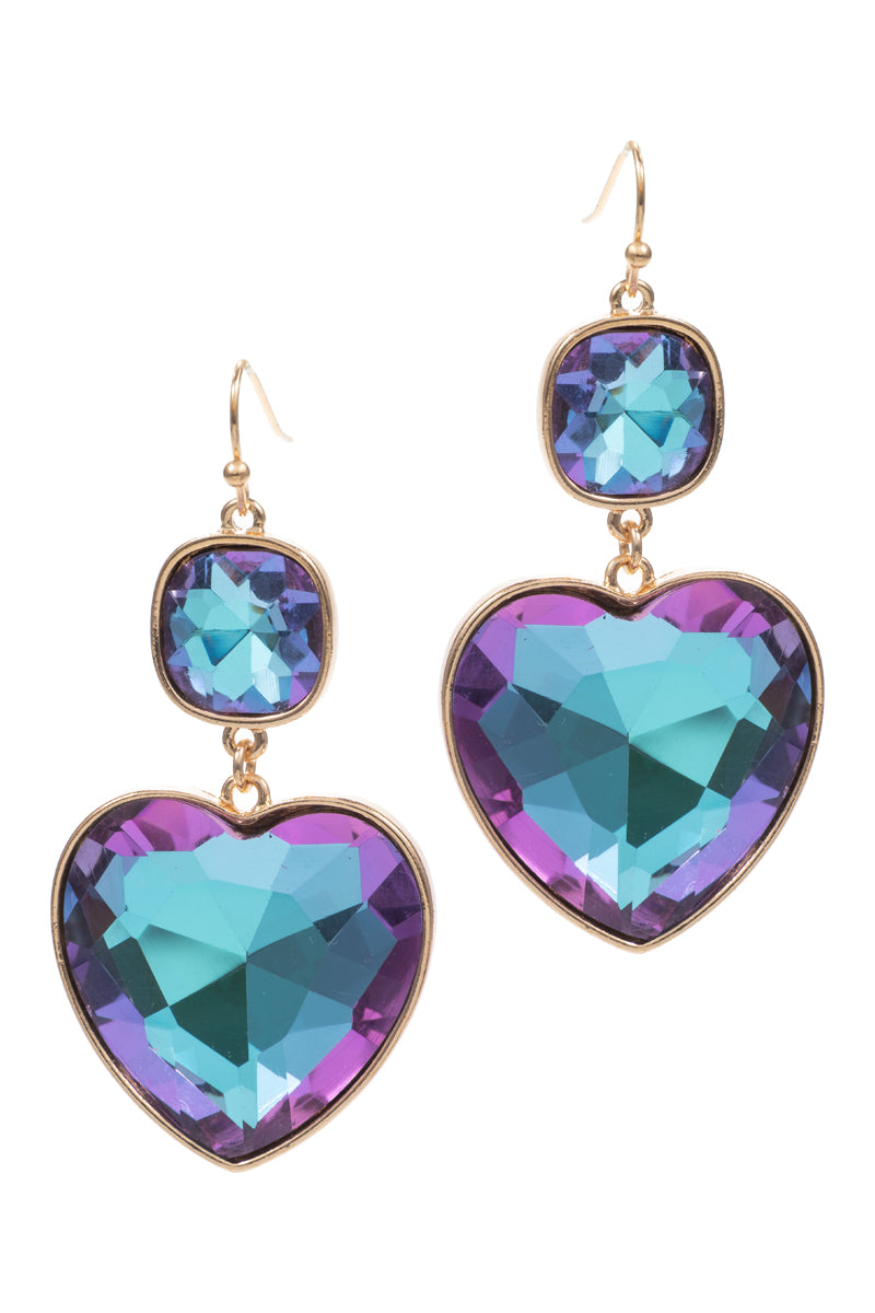 Dangle Heart Shape Glass Rhine Stone Hook Earrings