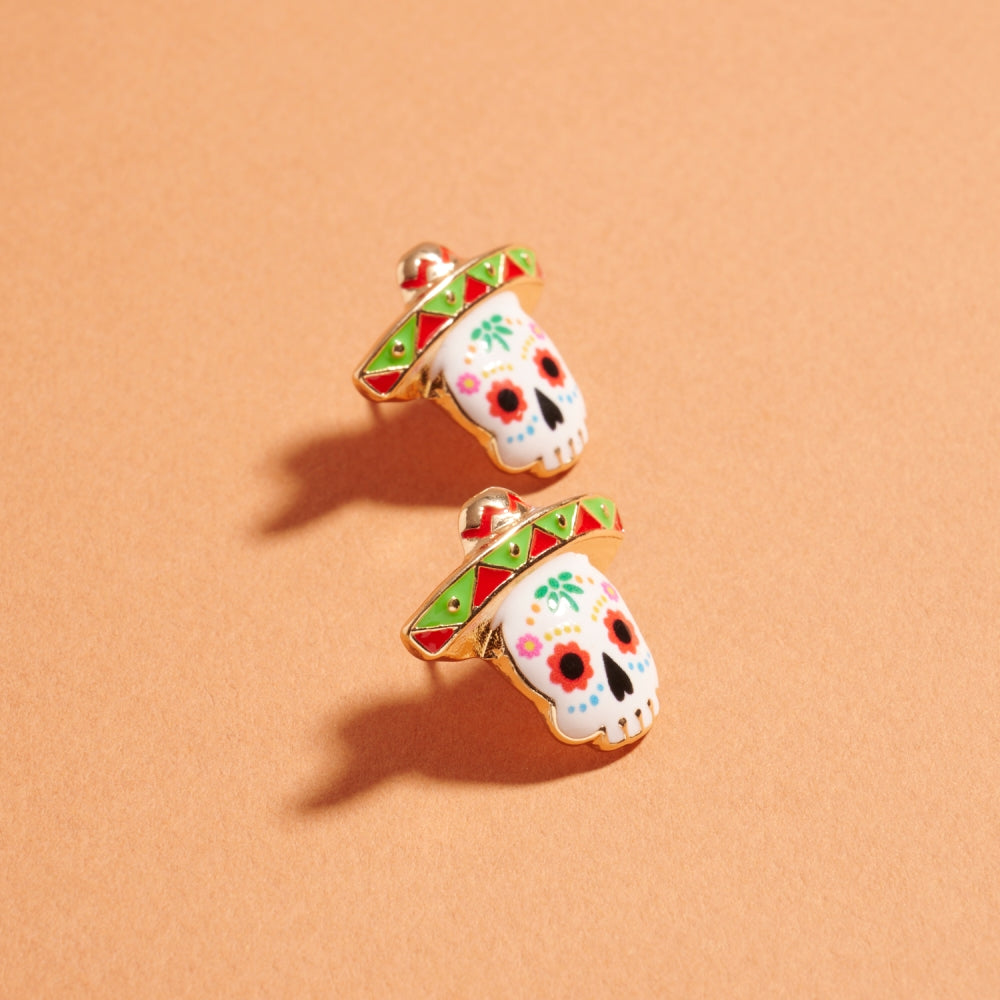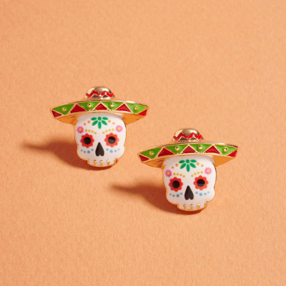 Celebrate the spirit of the season with these Day of the Dead skull earrings. Designed with colorful enamel and set in a classic post style, they are lightweight, vibrant, and perfect for festive fall looks.