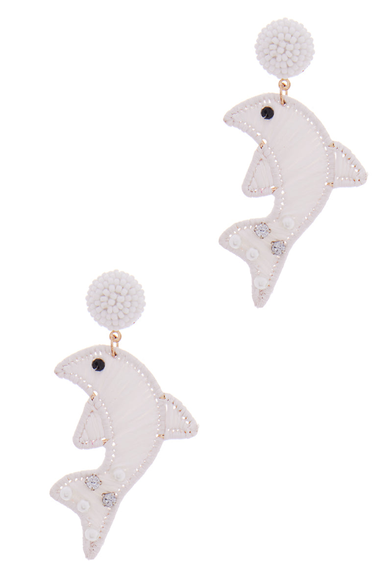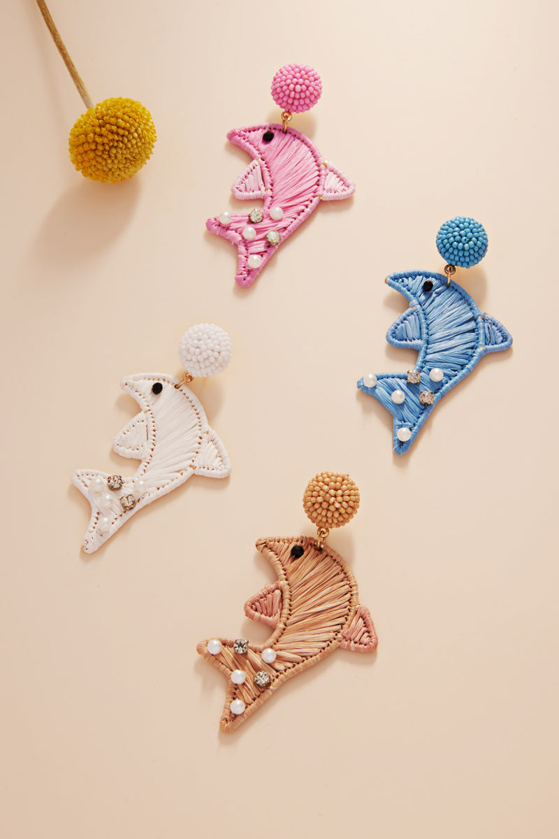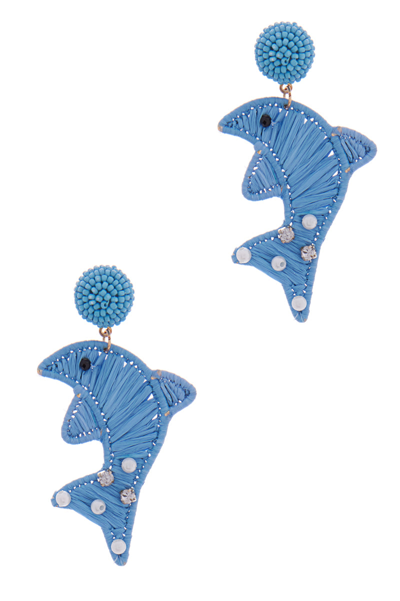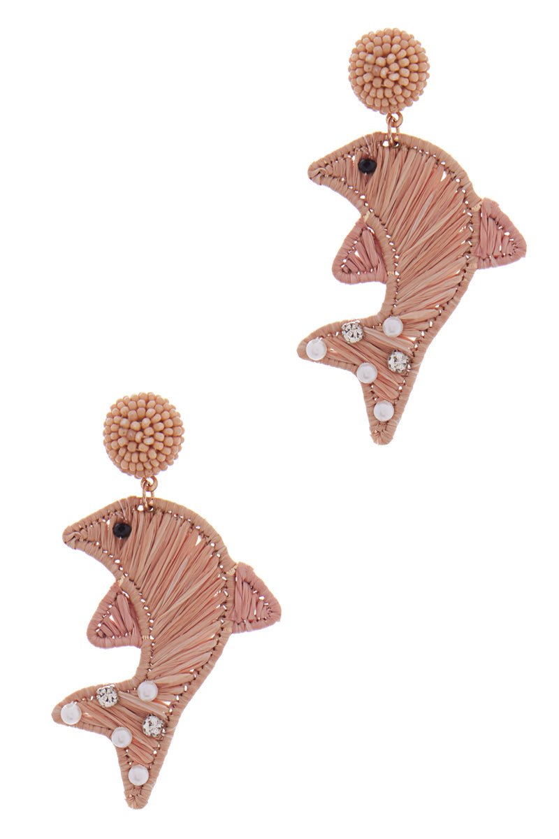 Dolphin Shaped Raffia Summer Post Earrings