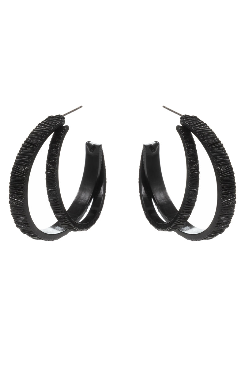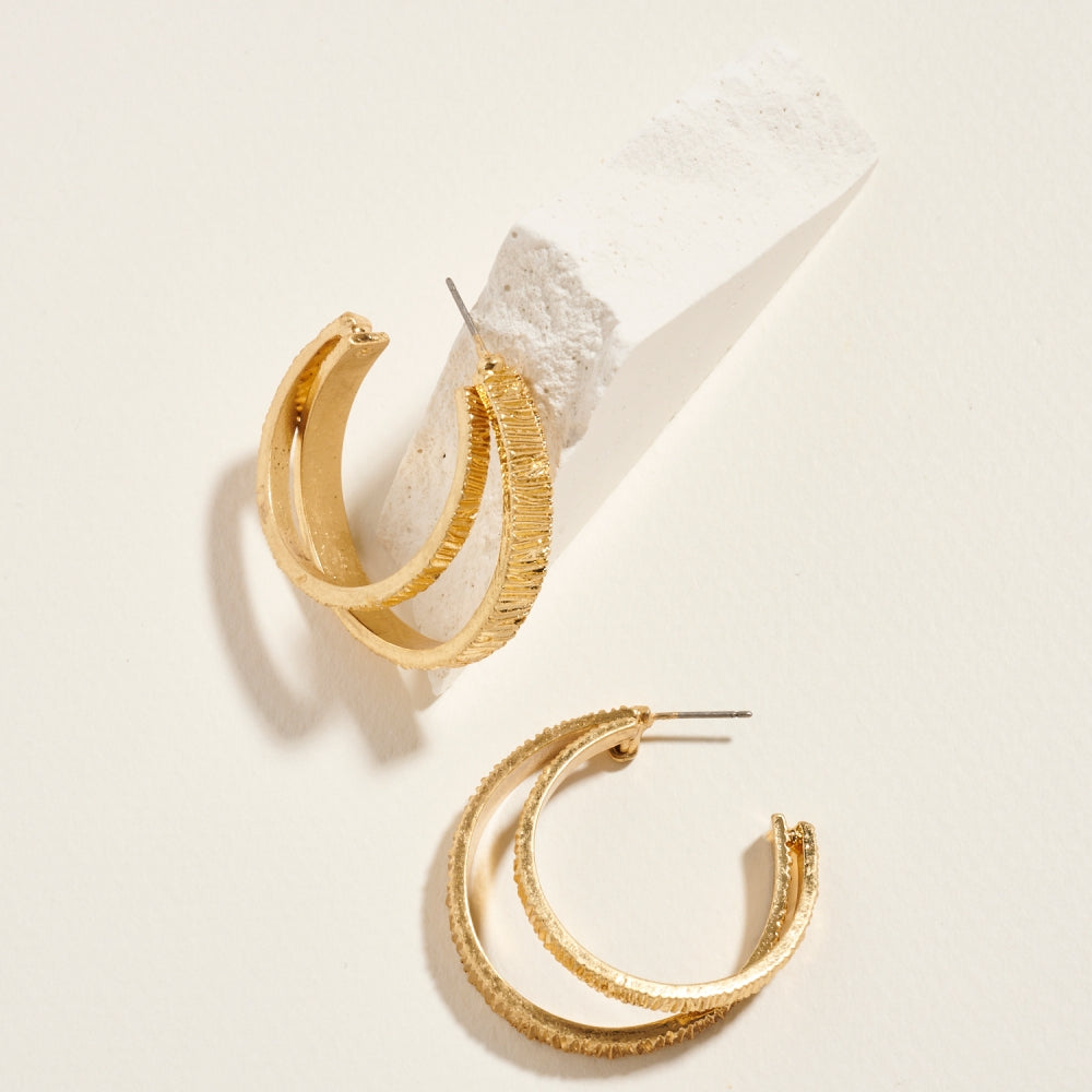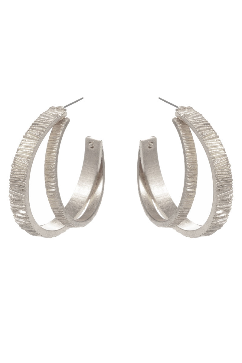 Two ribbed metal loops come together in this sleek, double-circle design. Lightweight yet eye-catching, these post earrings elevate both casual and dressy outfits.