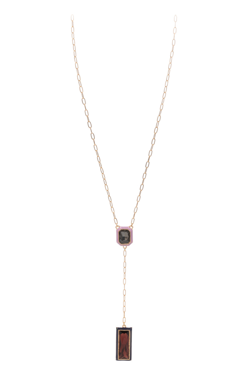Drop Rectangular Multi Color Glass Yshape Necklace
