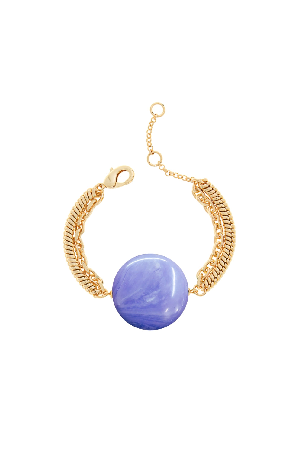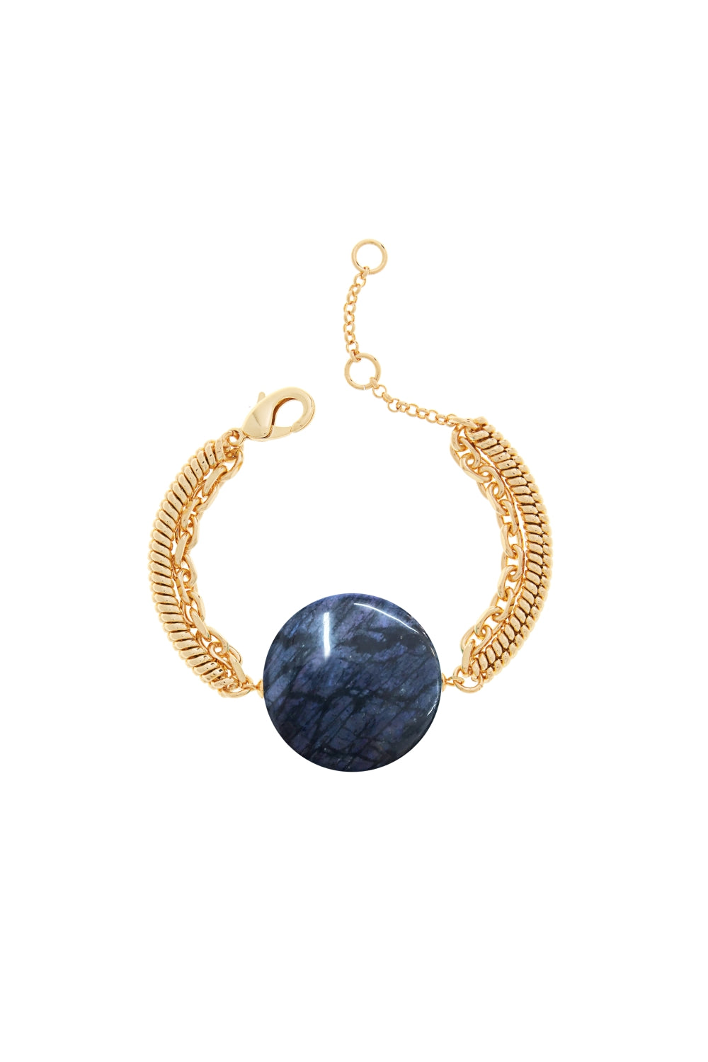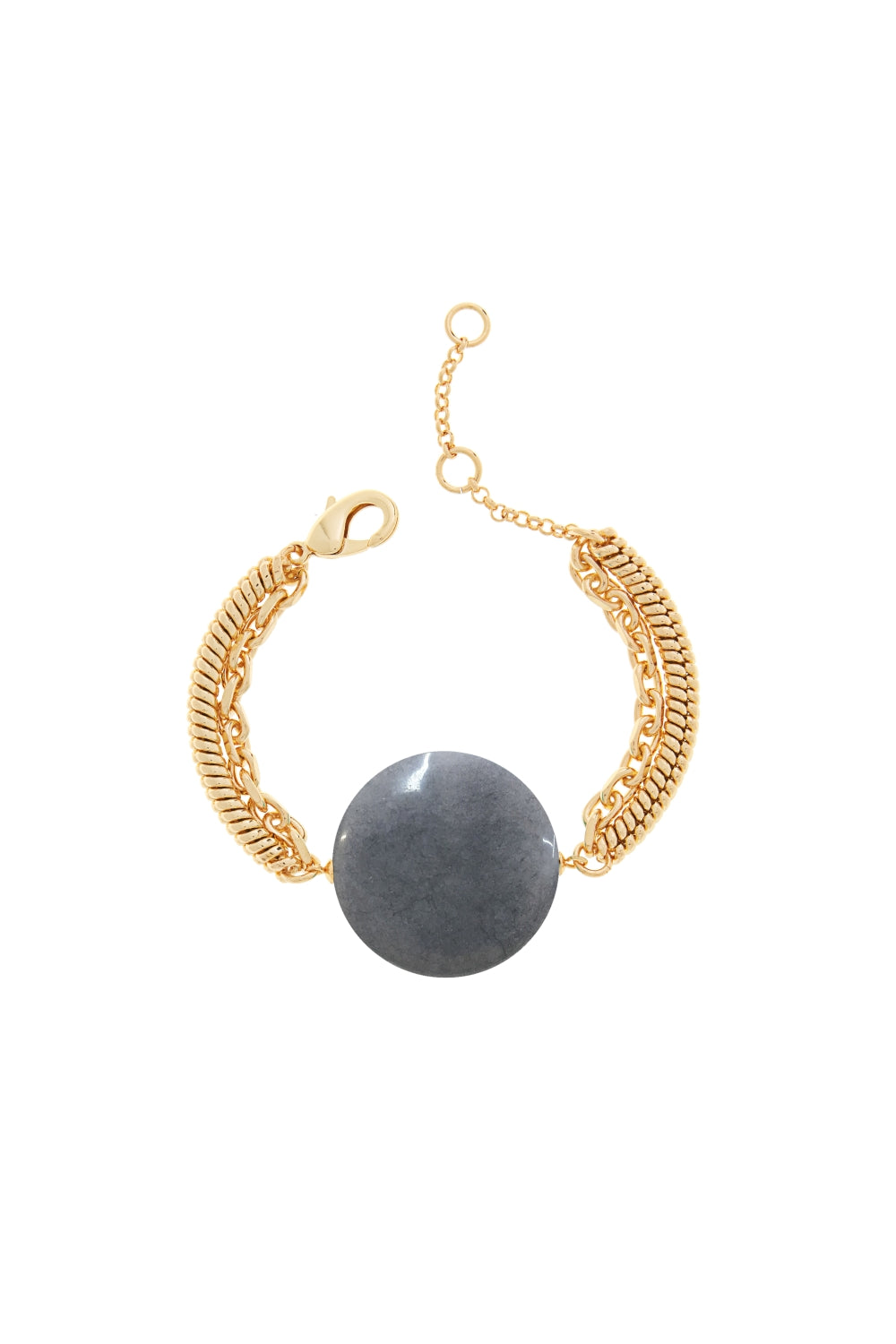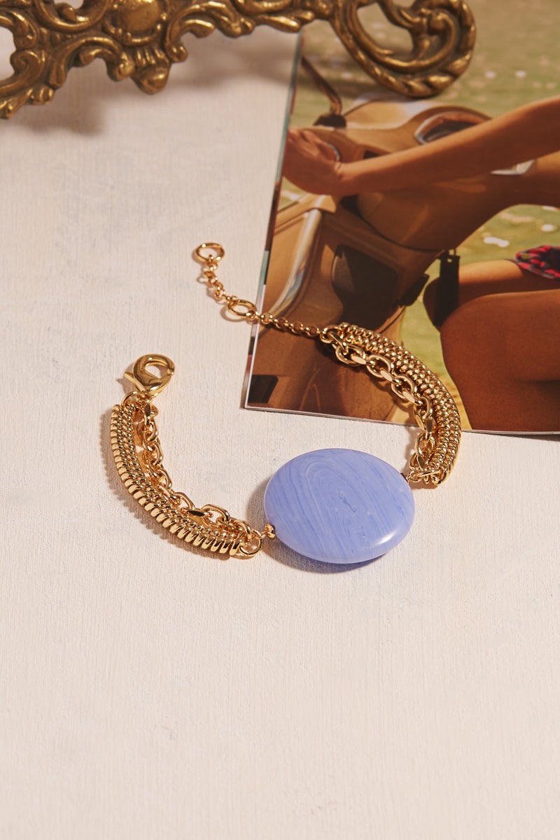 This stylish 7.25-inch bracelet features an 18K gold-plated brass chain and a smooth 35mm round-shaped stone clasp. The elegant clasp adds a contemporary touch while ensuring a secure fit. Perfect for everyday wear or special occasions, this bracelet enhances any outfit with its refined charm.