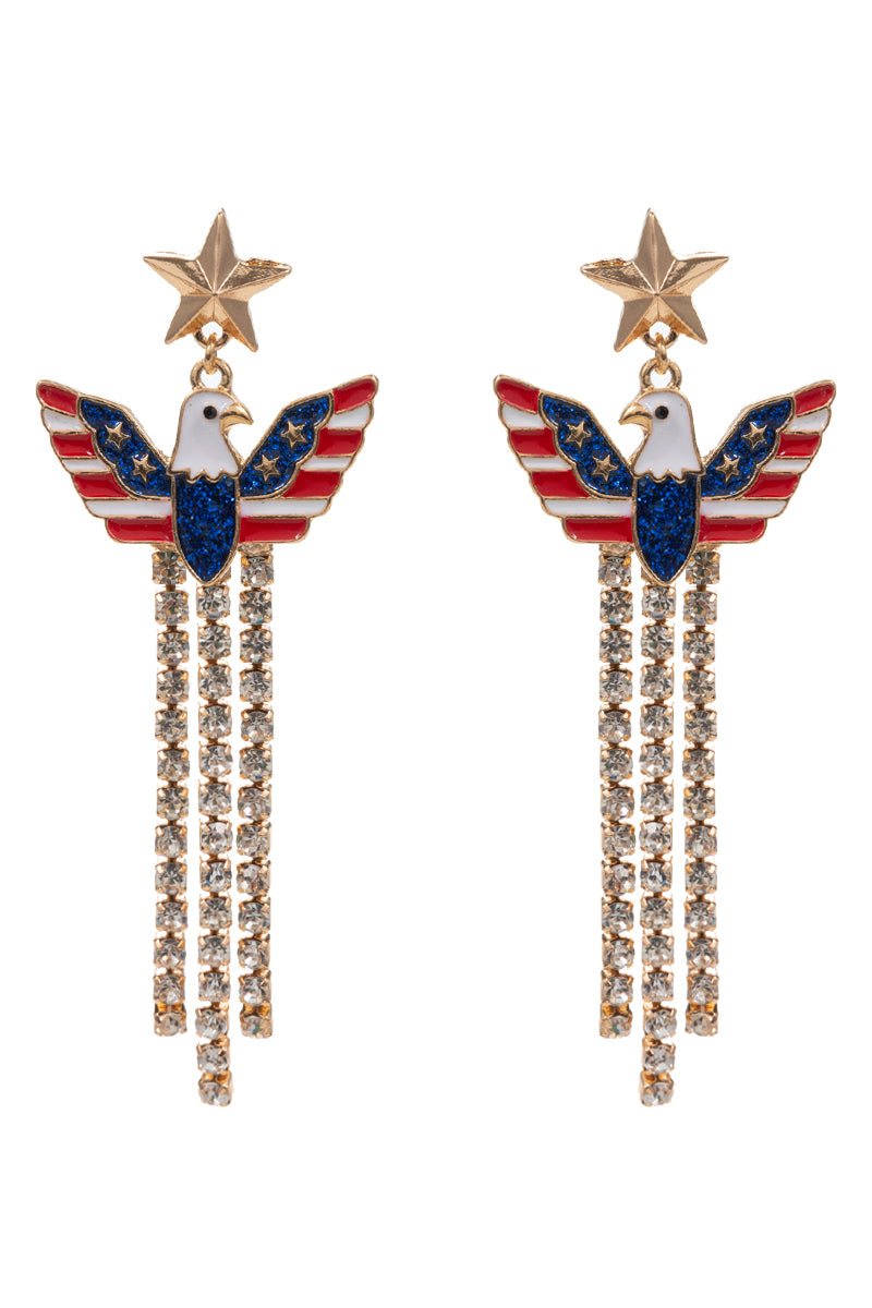 Eagle American Flag Enamel W Stone Post Earrings