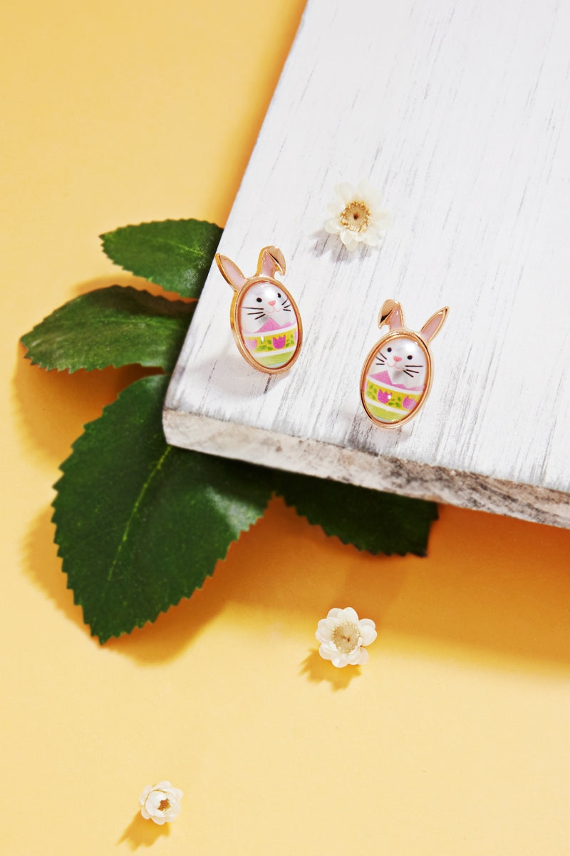 Upgrade your Easter accessories with these elegant and unique earrings. Featuring a delicate 0.75 inch egg-shaped pearl with a cute bunny print, these post earrings are the perfect addition to any outfit. Make a statement with this beautiful and festive piece that will surely catch everyone's eye.