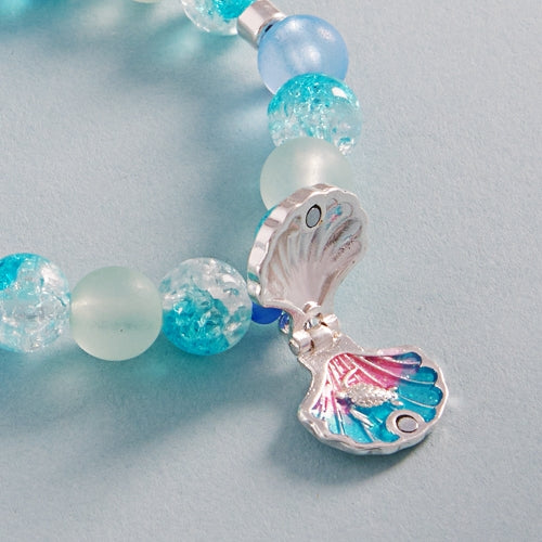 Enamel Shell Locket Charm Beaded Stretch Bracelet