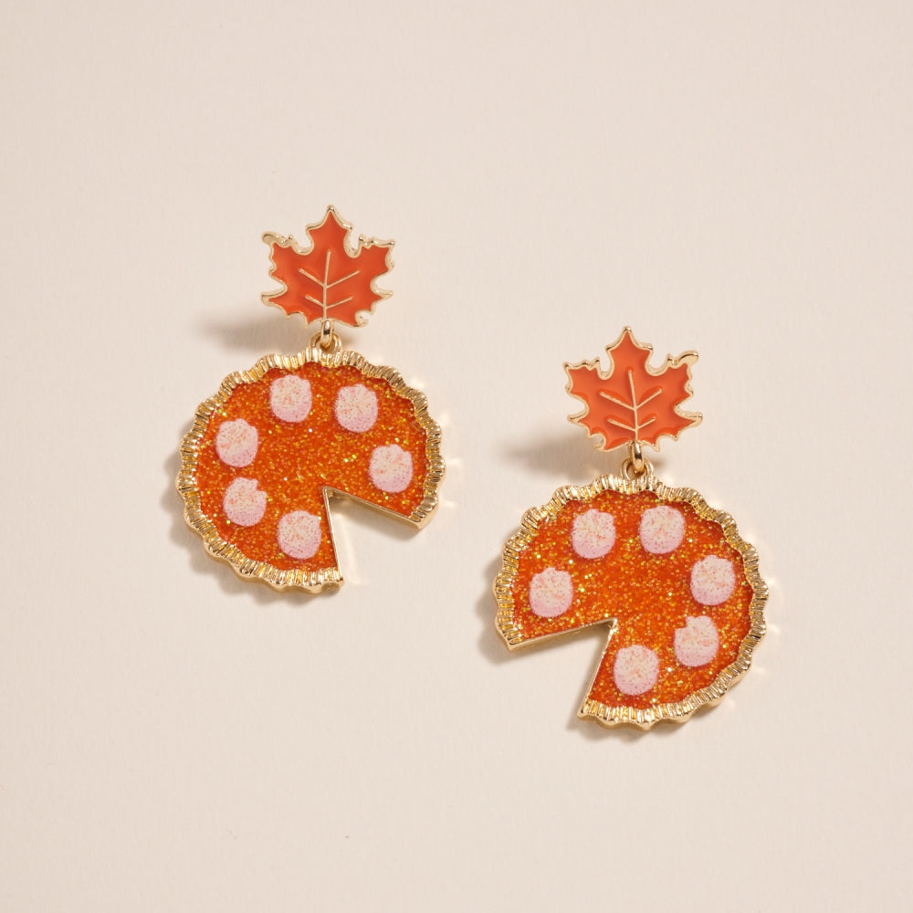 These festive earrings feature a fall leaf and pumpkin pie duo. Perfect for adding charm to your Thanksgiving look.