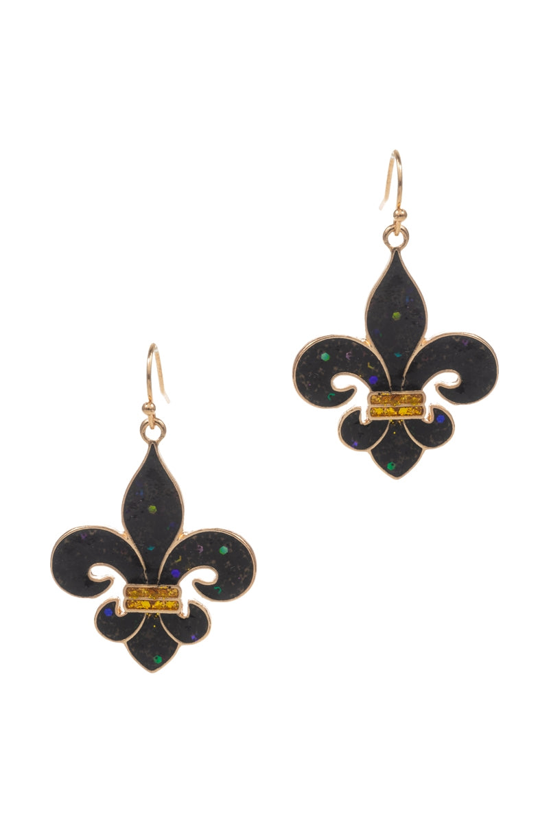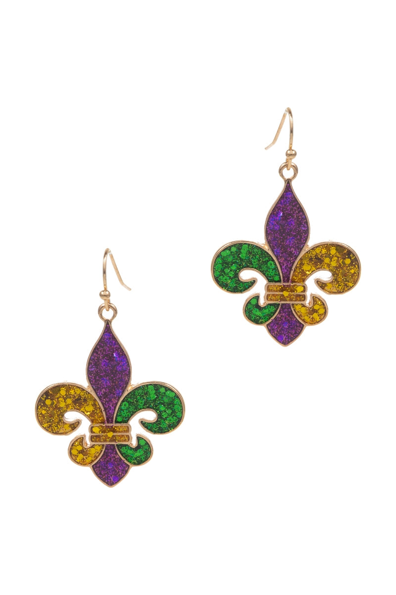 Fleur De Lis Glitter Mardi Gras Hook Earrings