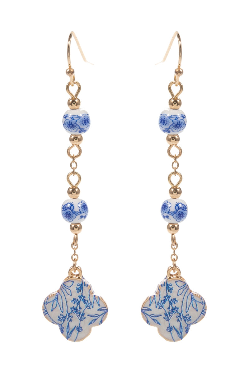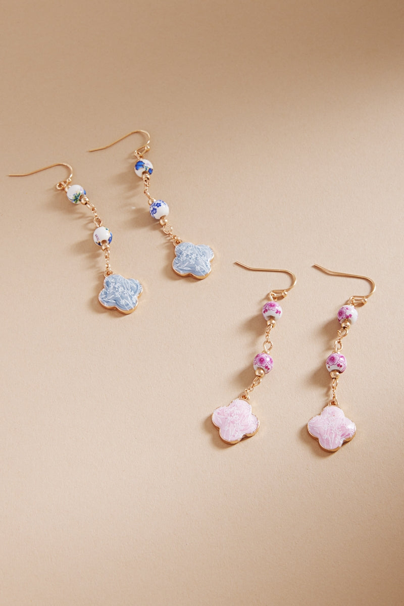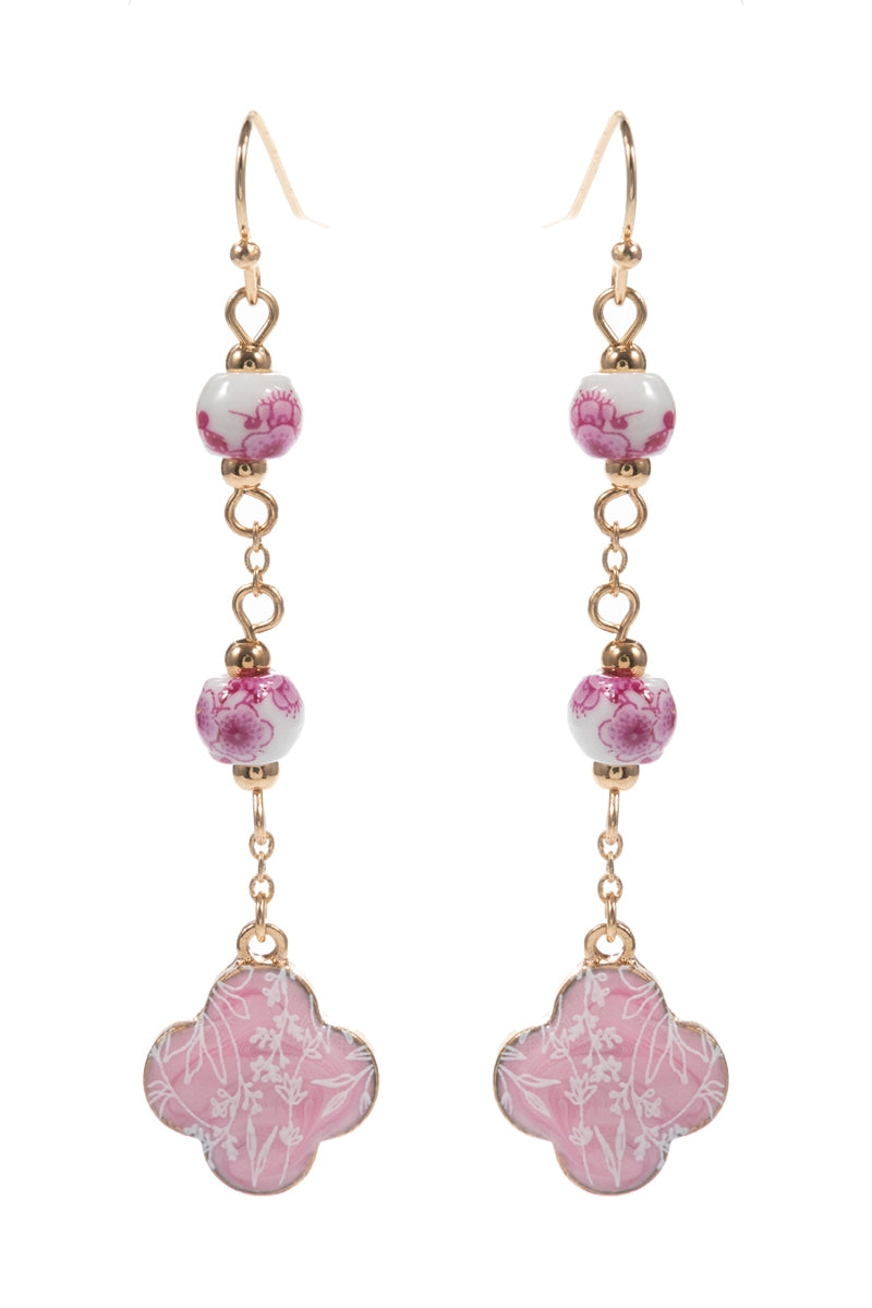 Floral Enameled Clover Ceramic Beads Hook Earrings