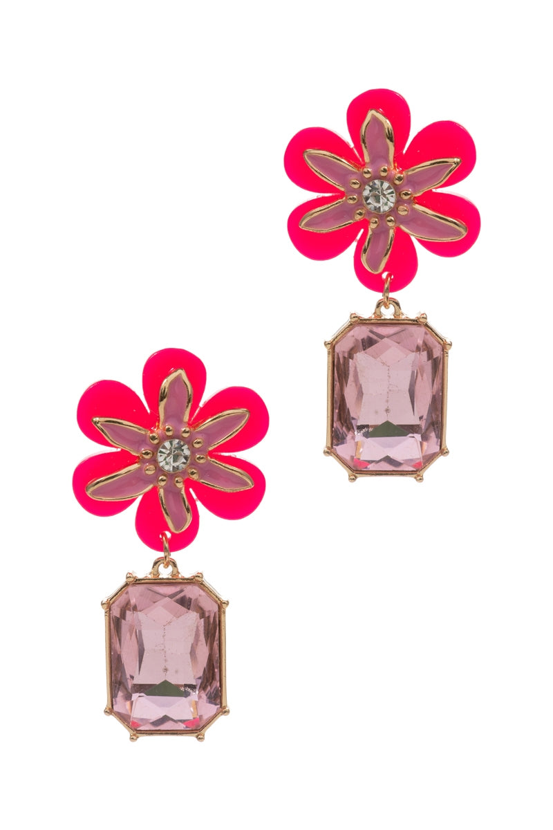 Flower Acetate Enamel And Rhinestone Post Earrings