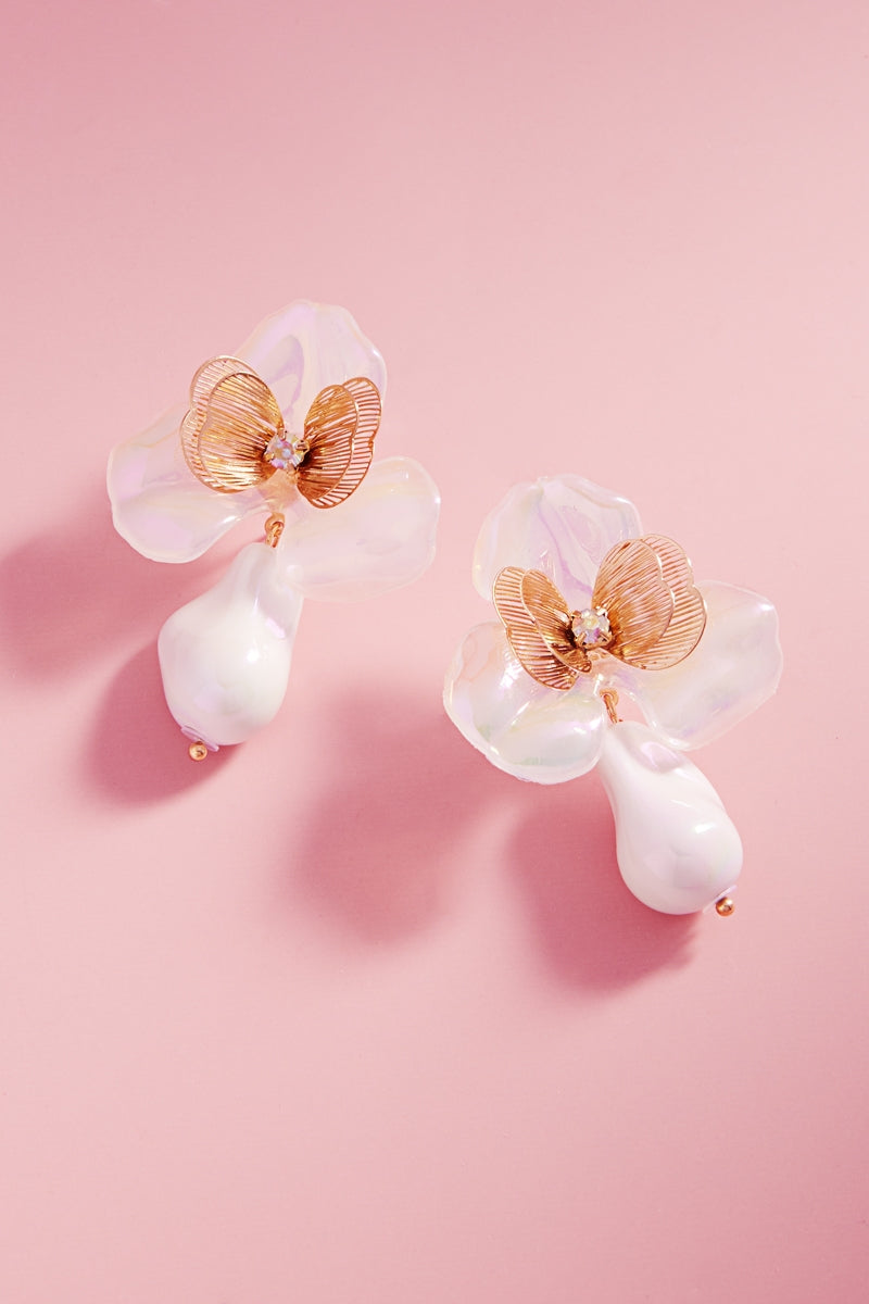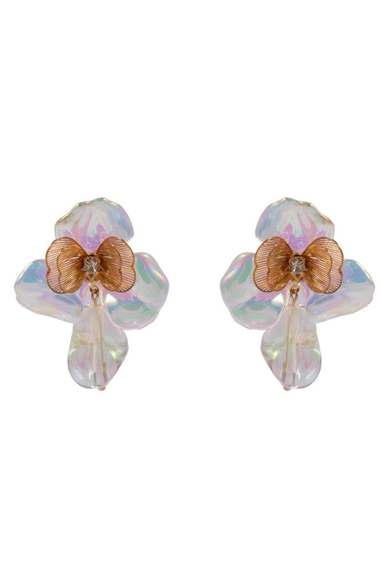 Flower Acrylic Part Brass Metal Post Earrings