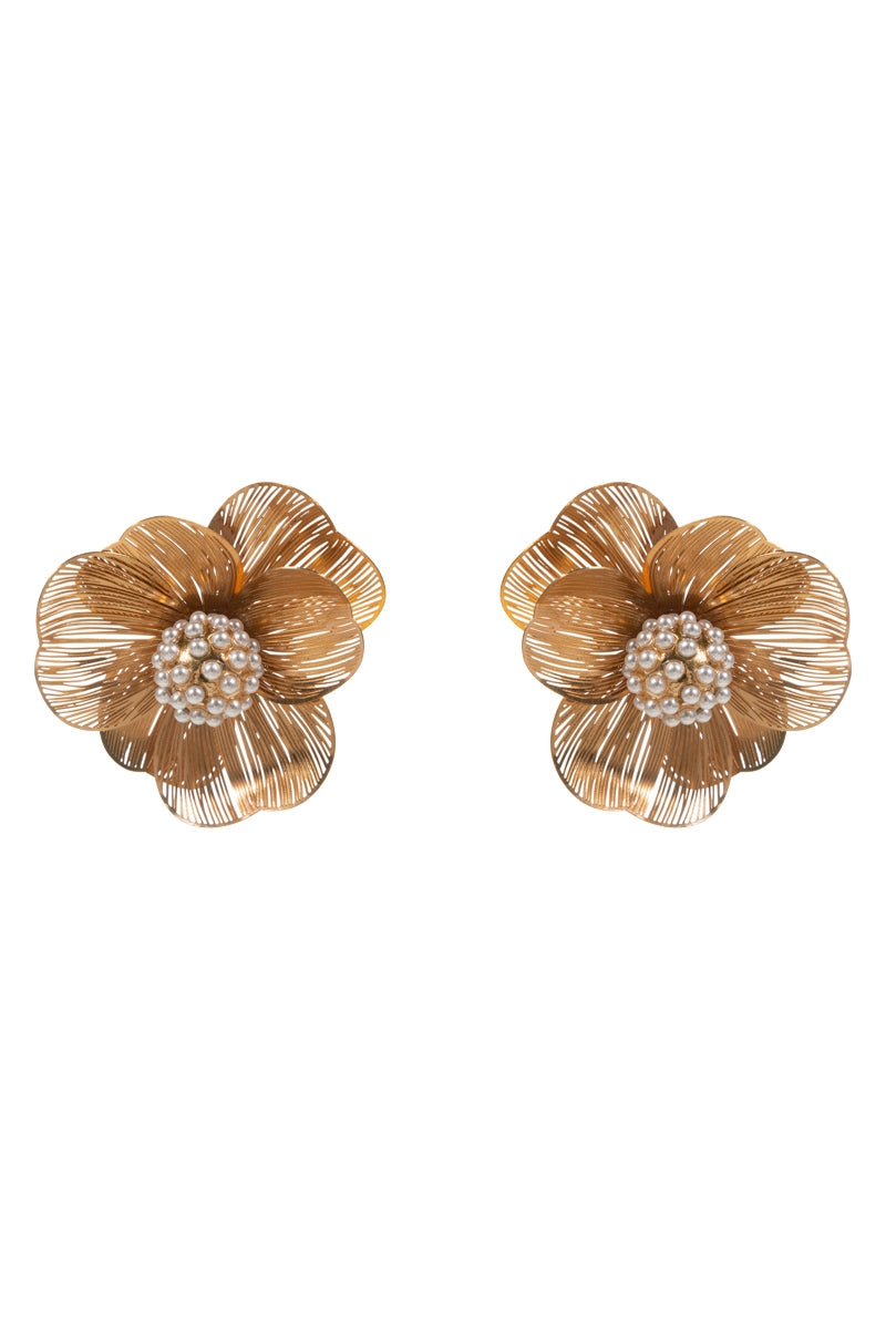 Flower Brass Metal Clear Rhinestone Post Earrings