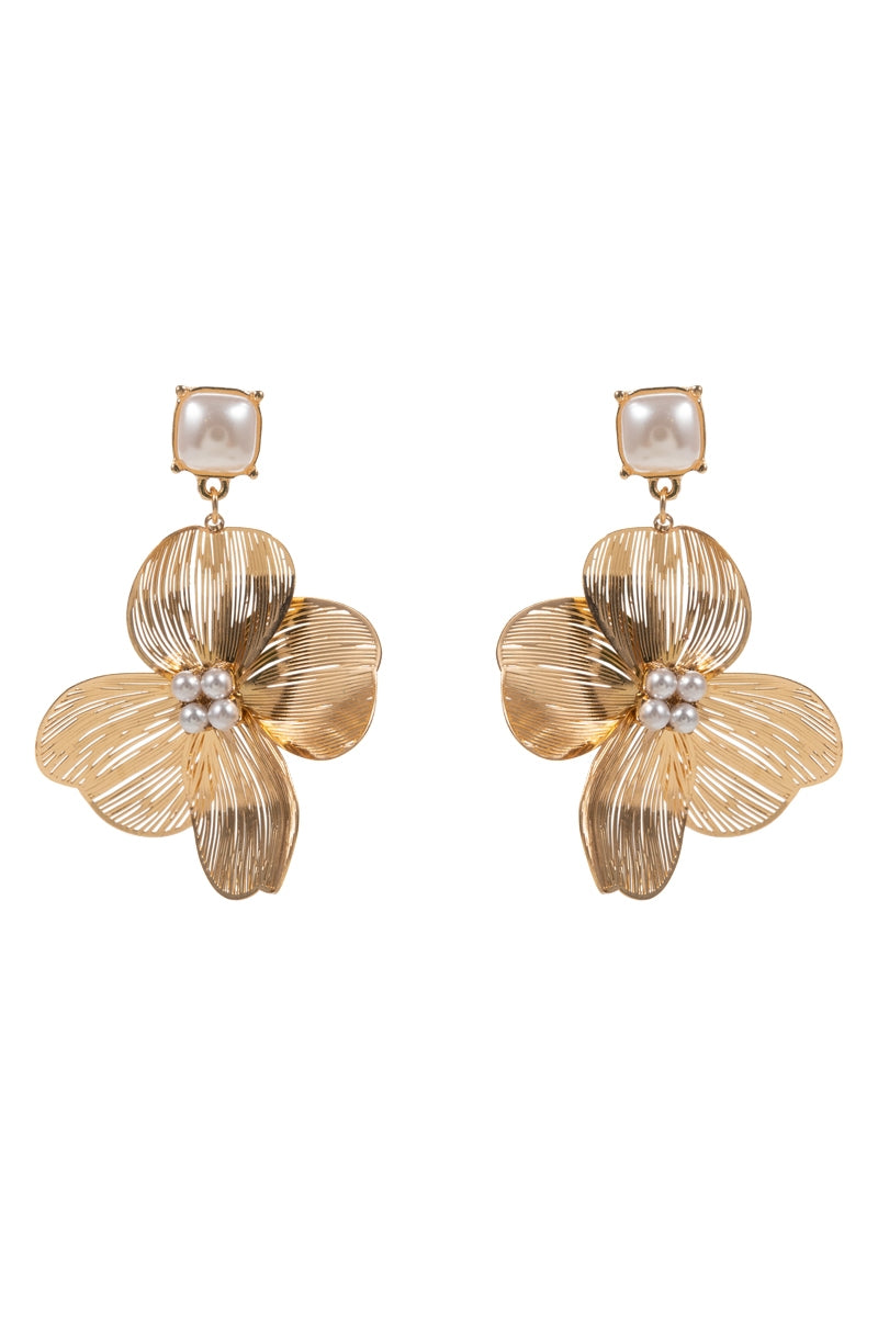Flower Brass Metal Clear Rhinestone Post Earrings