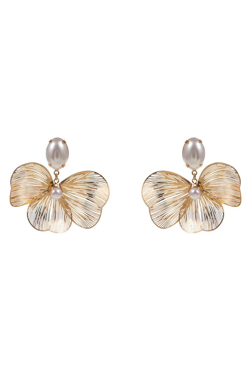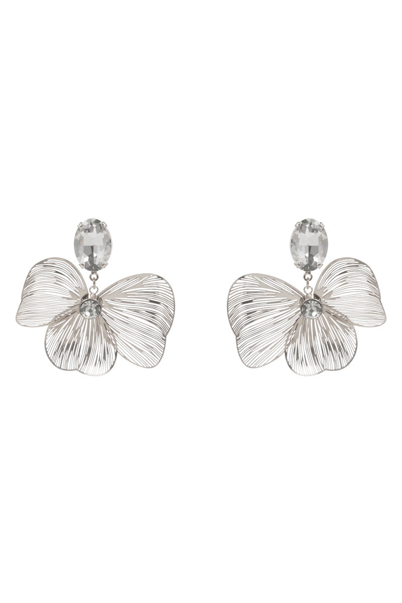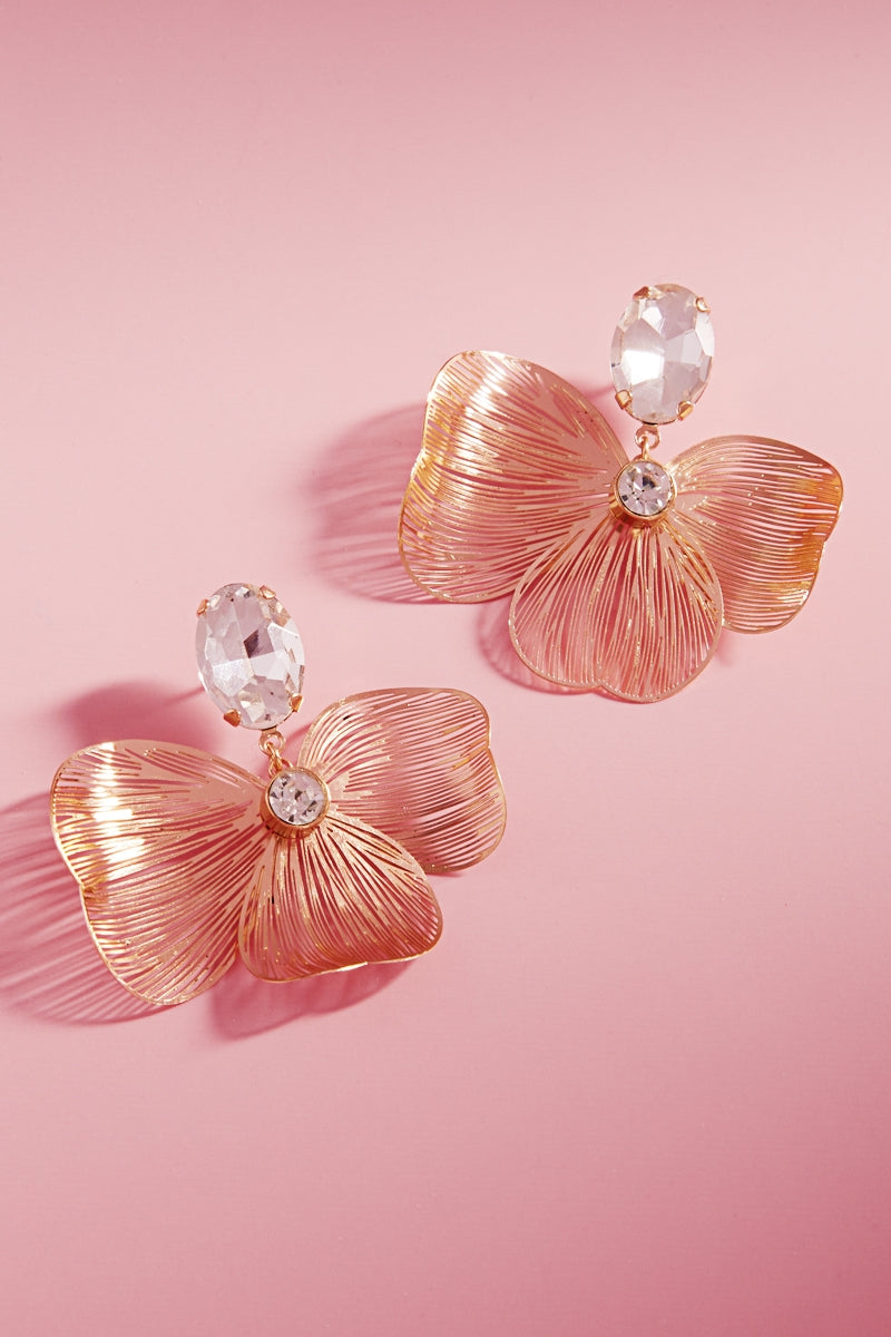 Enhance your look with these elegant 1.75 inch flower-shaped brass metal earrings. The clear rhinestone accents and titanium posts provide a touch of sophistication, making them the perfect addition to any outfit. Experience the benefits of quality materials and craftsmanship with these beautiful earrings.