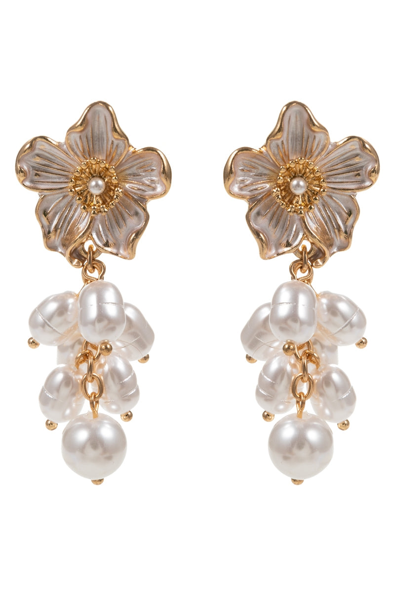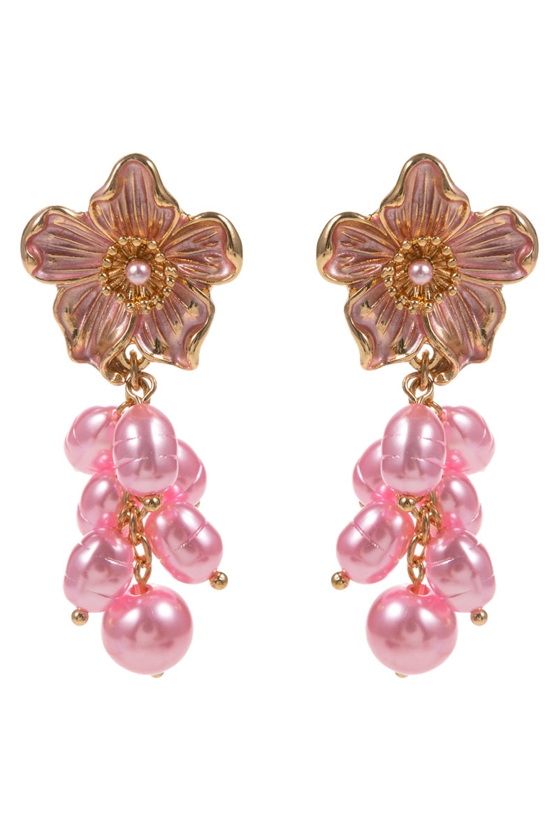 Flower Colored Metal Acrylic Pearls Post Earrings