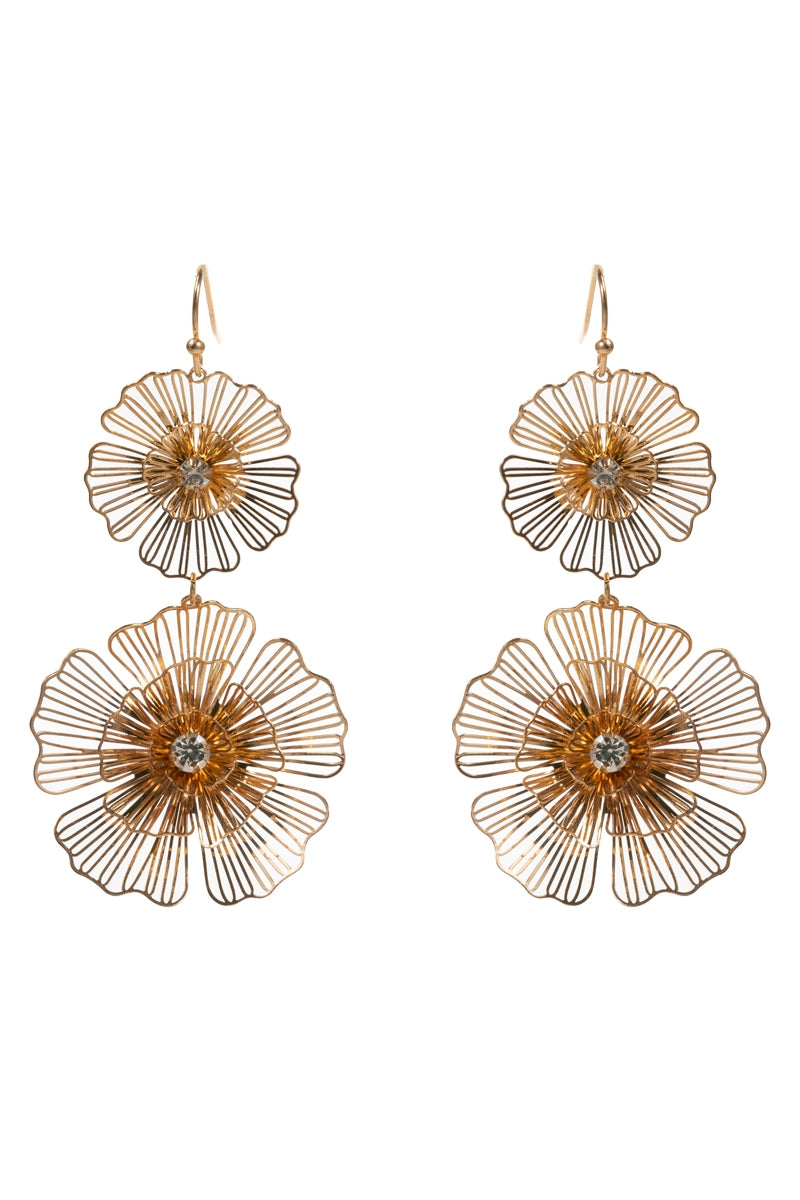 Flower Metal Clear Rhinestone Brass Hook Earrings