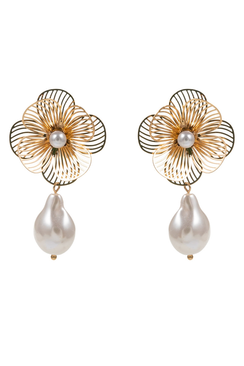 These 2.25 inch flower shaped brass metal earrings feature clear resin and titanium posts. Crafted with quality materials, these earrings offer a unique design and durable construction. Add a touch of elegance to any outfit with these stylish and hypoallergenic earrings.