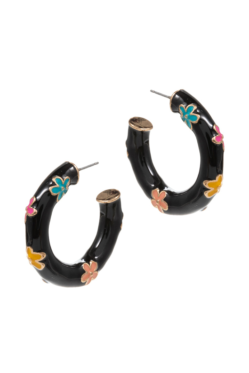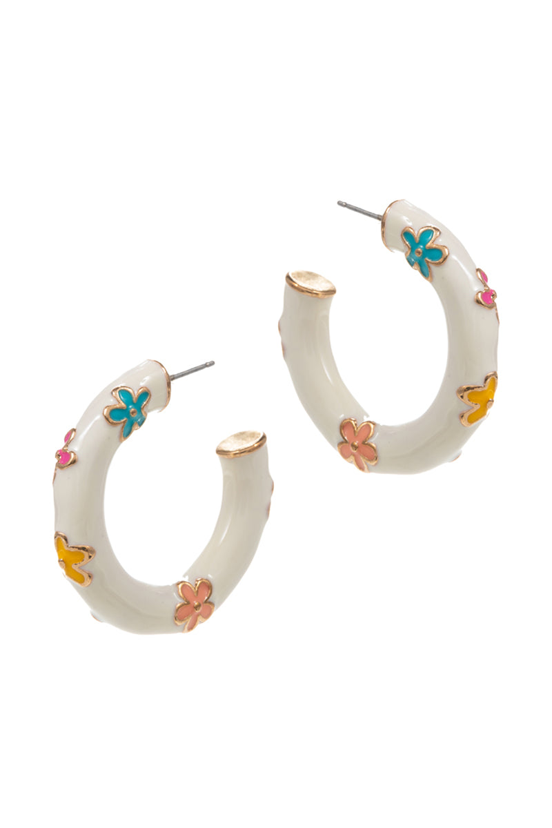 Made with high-quality enamel, these hoops add a pop of colour to your outfit. With its sturdy construction and delicate floral design, these earrings are perfect for any occasion.