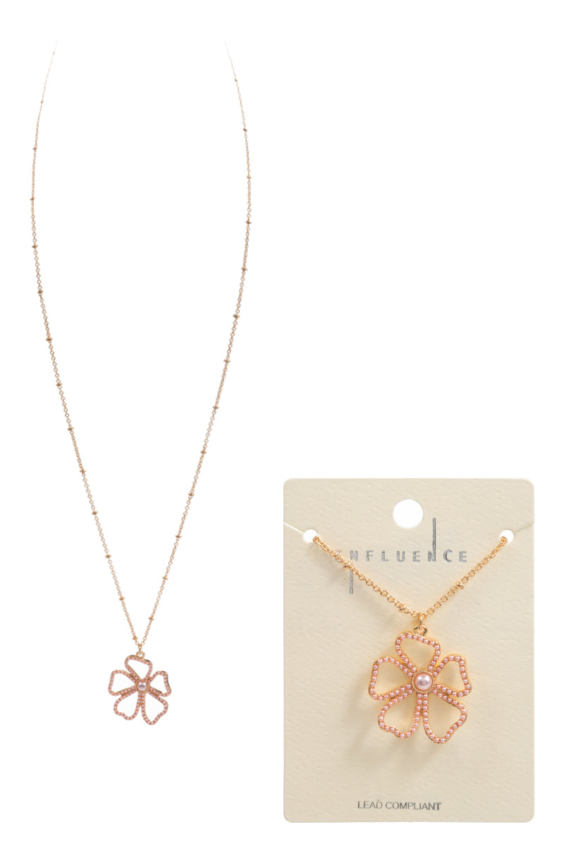 Elevate your style with our 18inch flower pearl pendant necklace. The intricate floral design and lustrous pearl add elegance to any outfit. Perfect for special occasions or everyday wear.