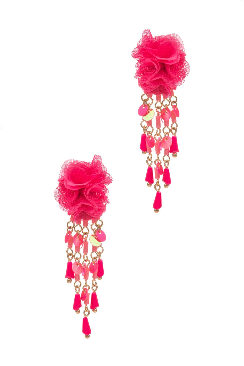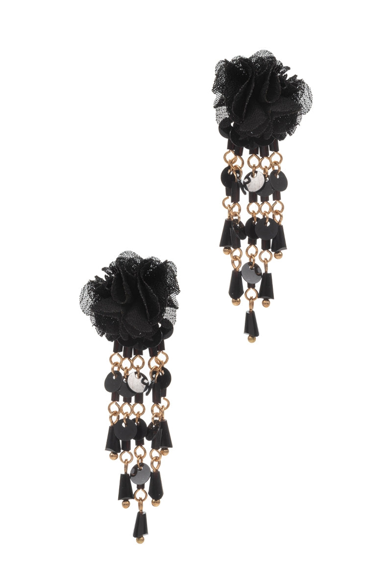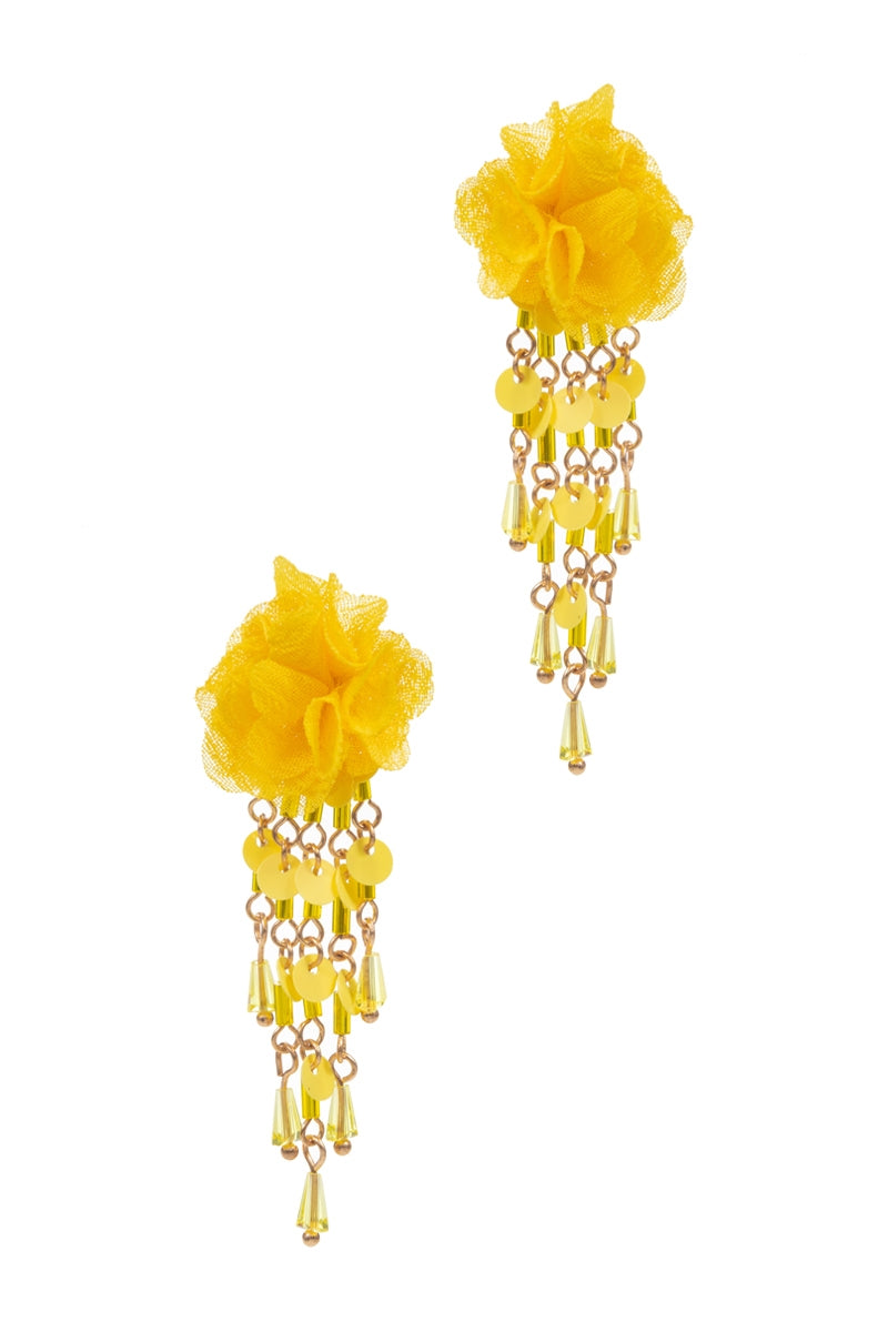 Flower Pompom Sequin Glassbead Tassel Post Earrings