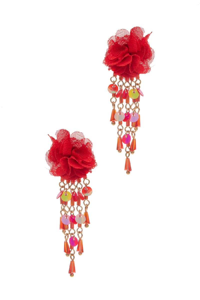 These elegant earrings feature a 3-inch flower pompom with sequins and glass beads. The tassel post design adds a touch of glamour and sophistication to any outfit. Handcrafted with precision and quality materials, they are sure to make a statement. Perfect for a special occasion or to elevate your everyday look.