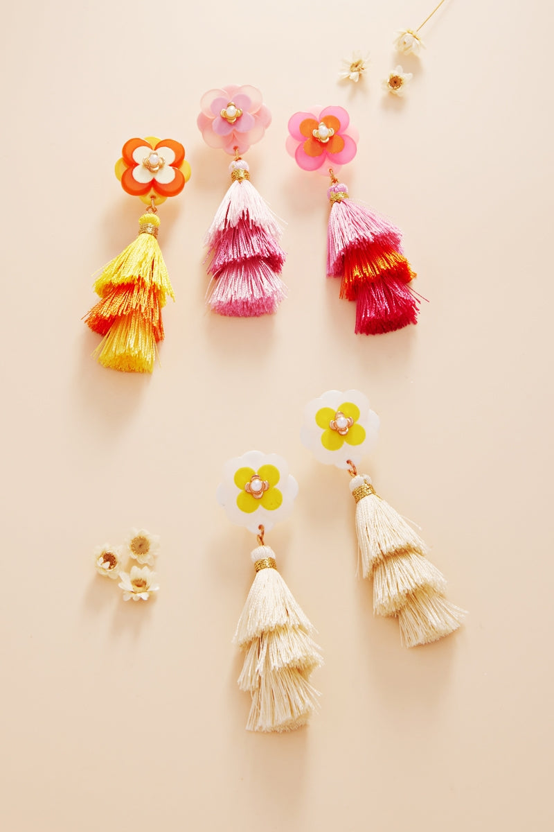 Illuminate your look with these elegant flower-shaped acetate earrings. The delicate tassel adds a touch of movement, perfect for a night out or special occasion. These earrings are made with high-quality materials and expert craftsmanship, ensuring a sophisticated and timeless addition to any jewelry collection.