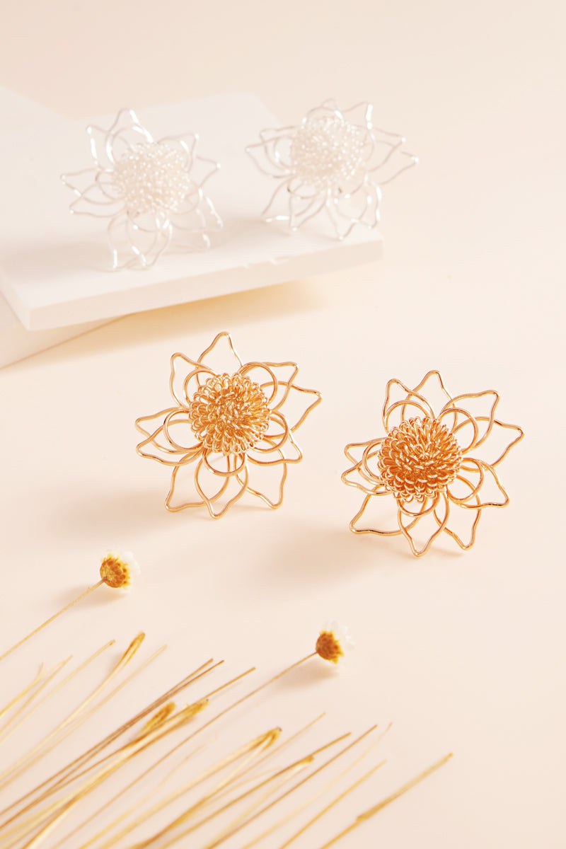 Flower Shaped Metal Post Earrings