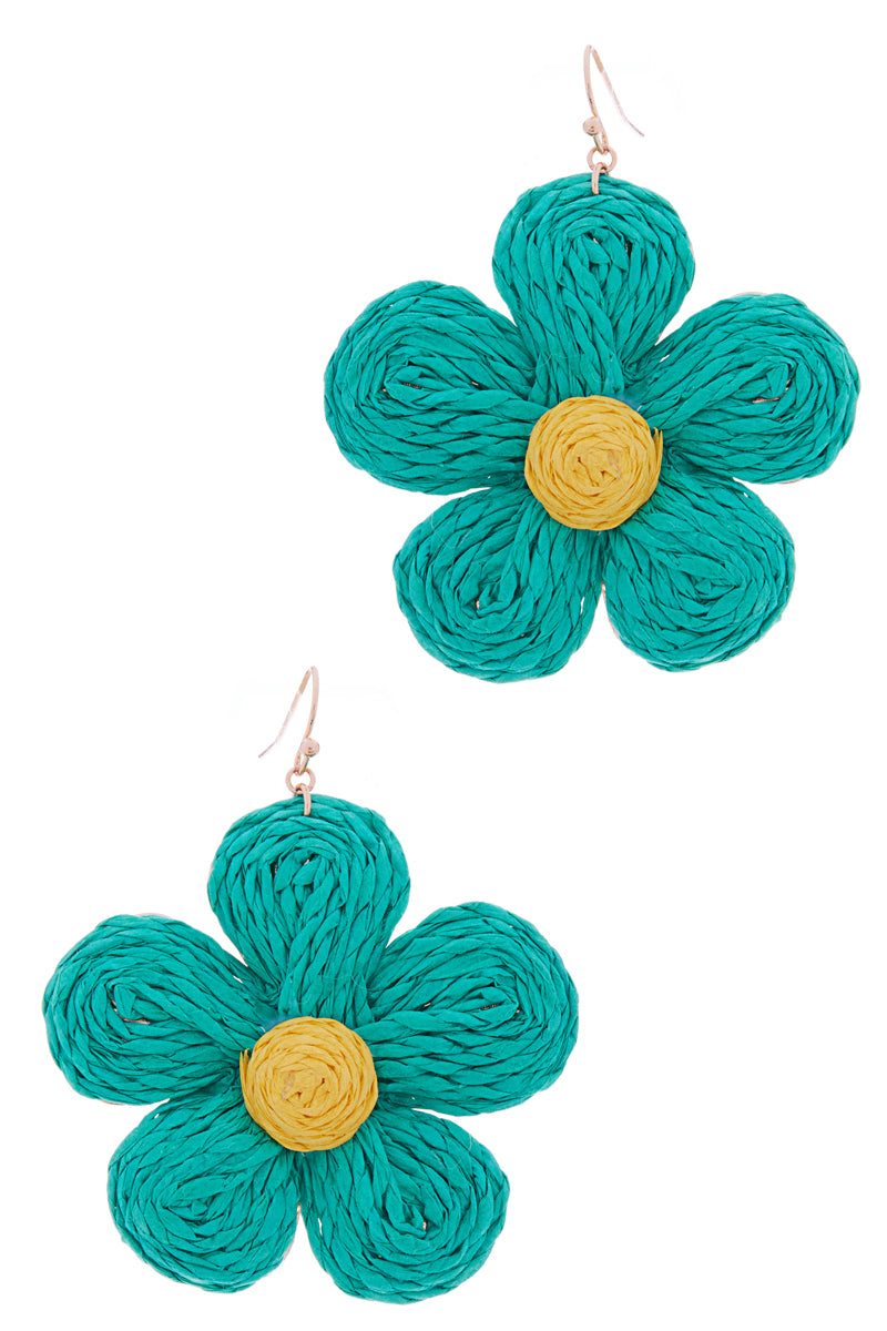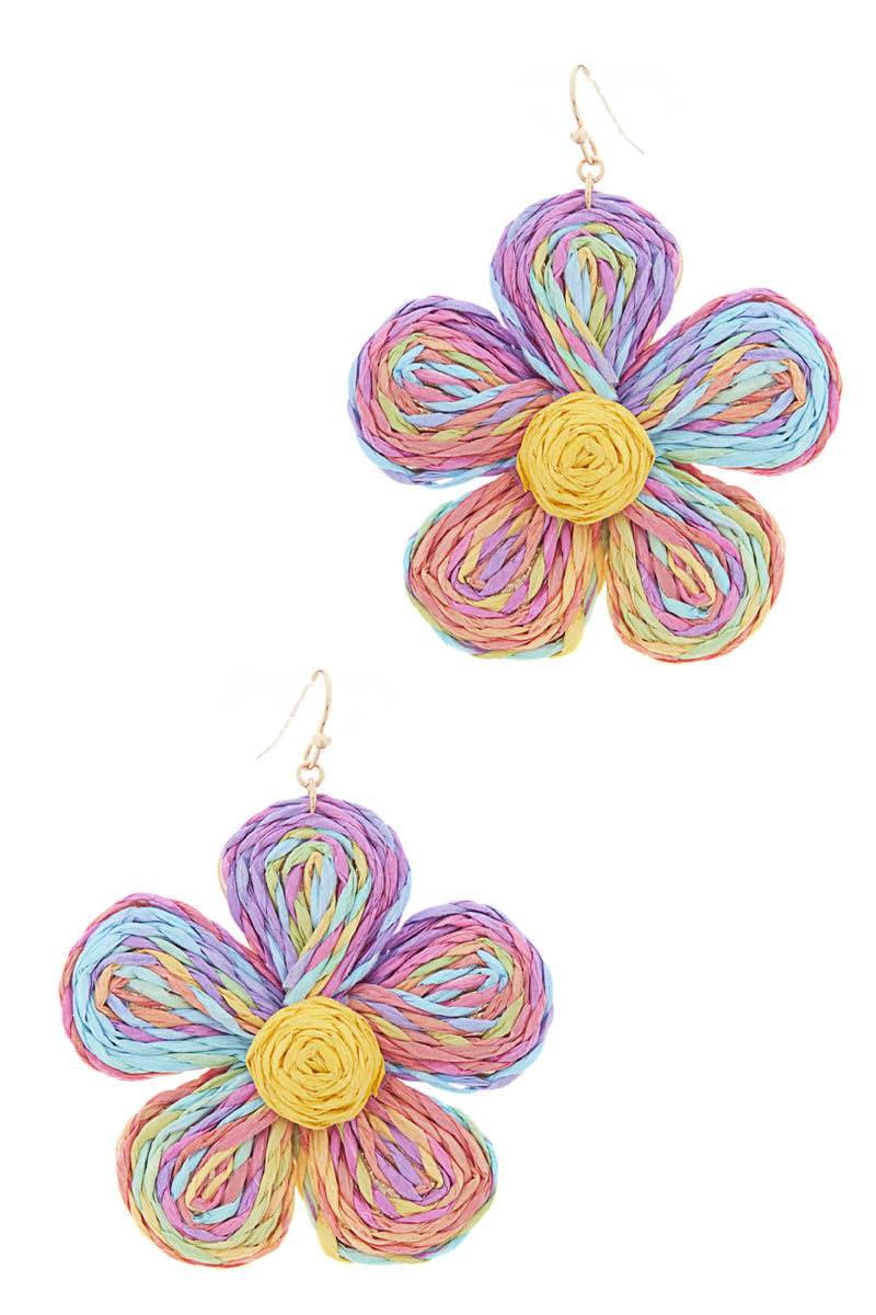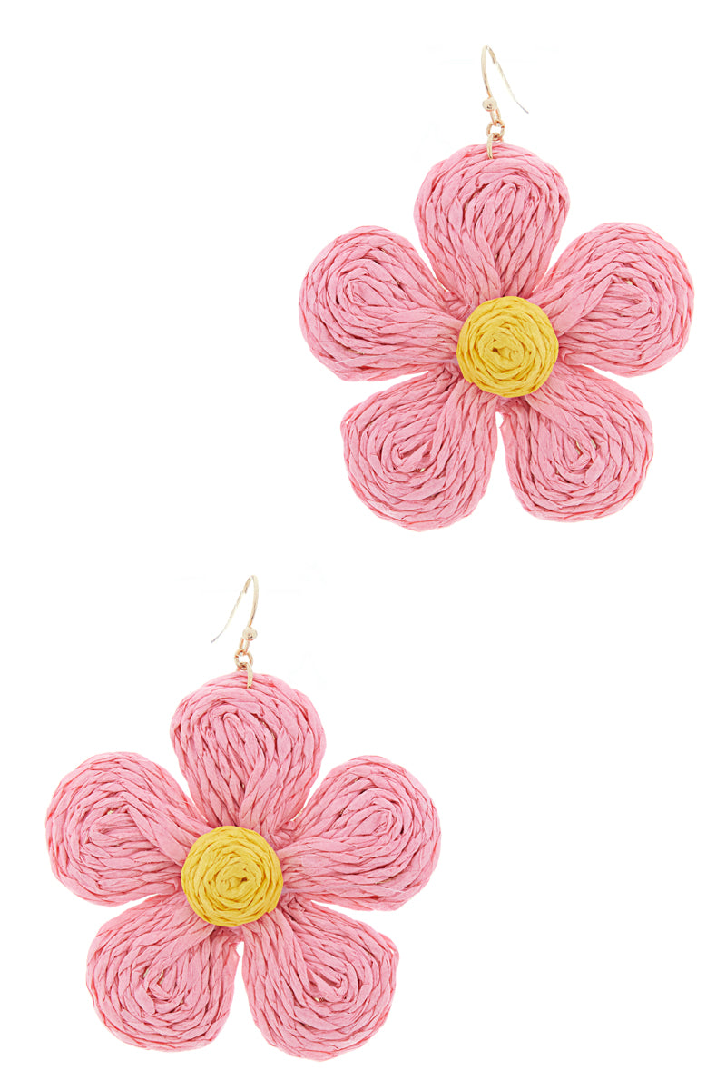 Flower Shaped Raffia Hook Earrings