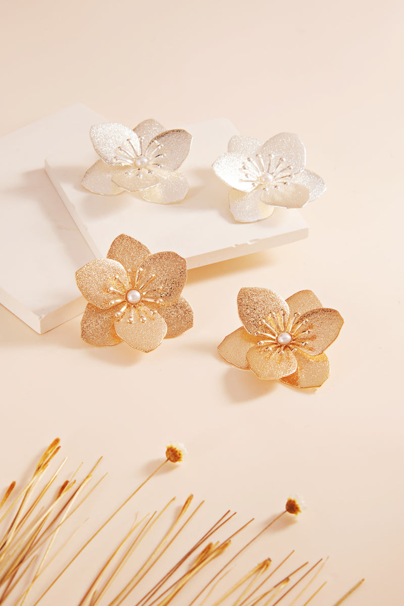 These 2 inch flower shaped earrings feature a unique sand textured metal design. The intricate details add a touch of elegance while the post design ensures a secure fit.