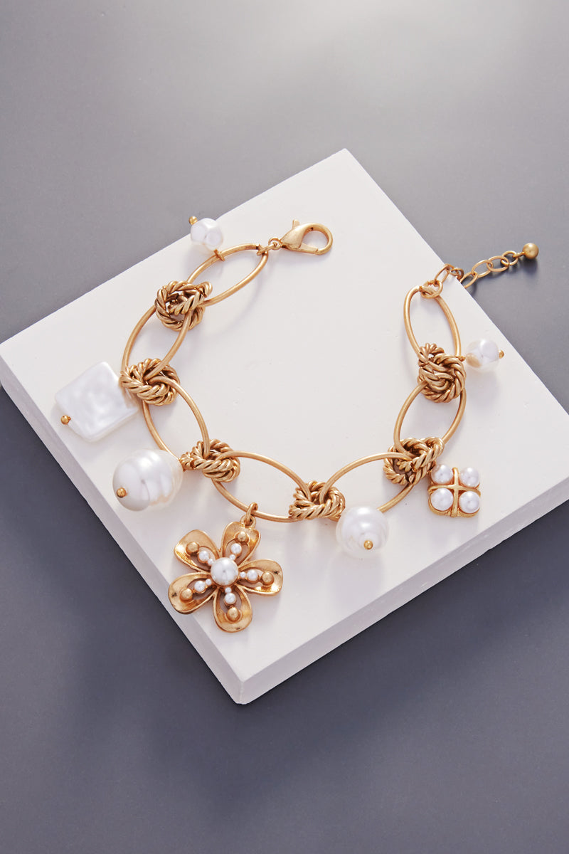 Flower Shaped Vintage Pearl Charm Clasp Bracelet
