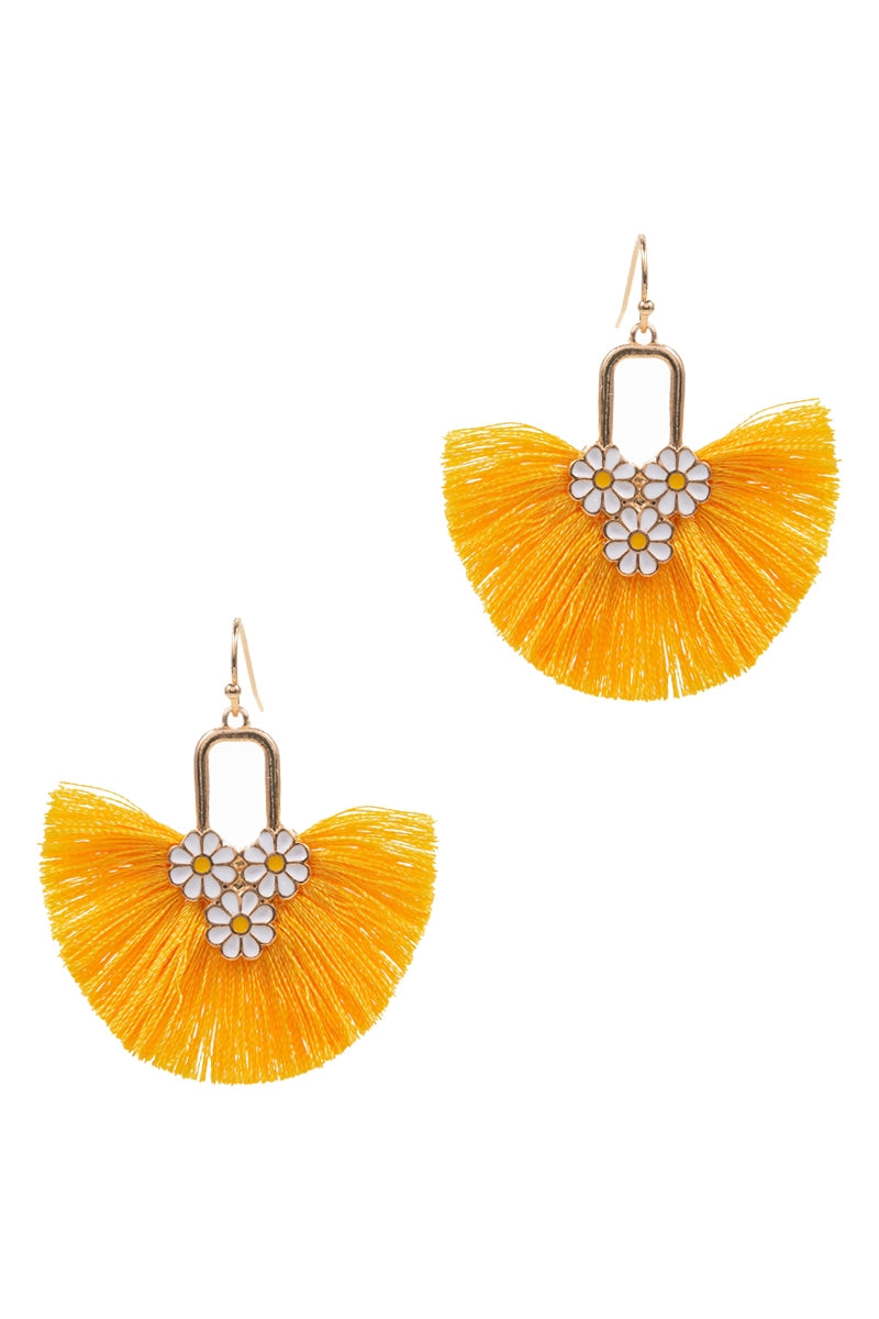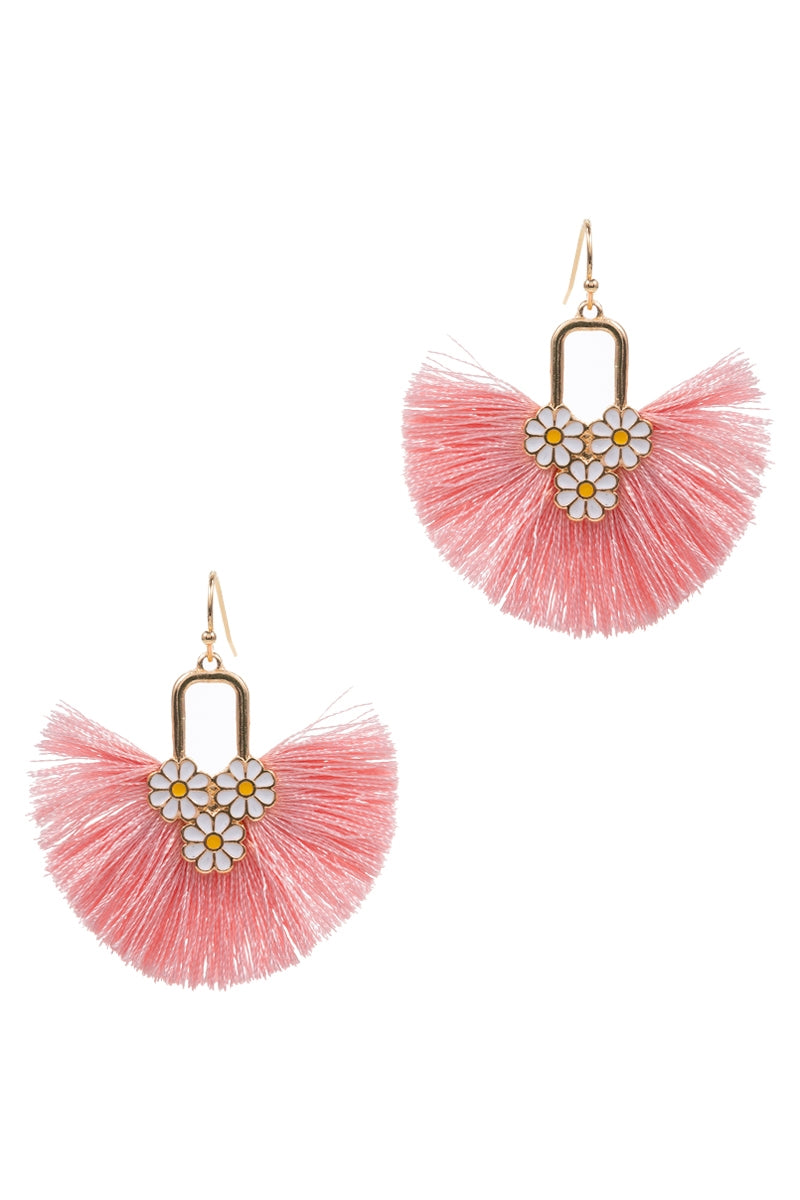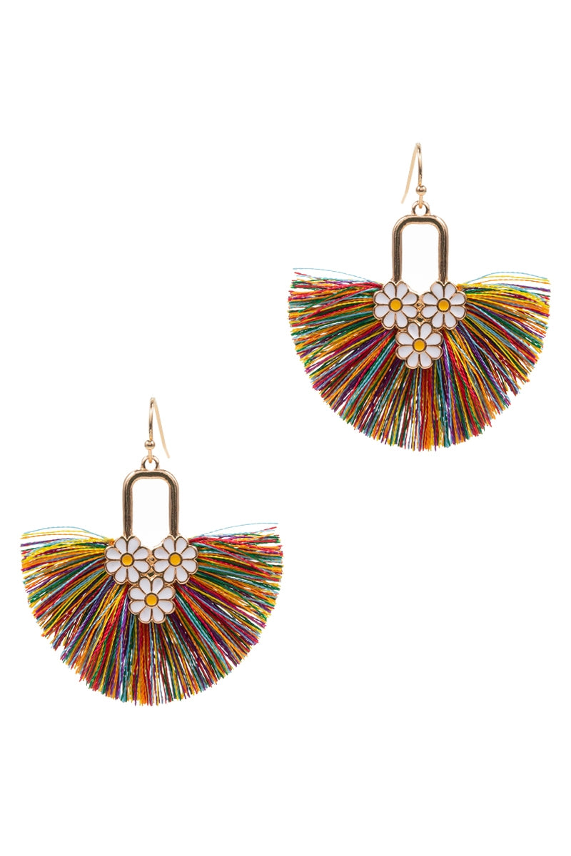 Enhance your outfit with these elegant and unique 1.5 inch flower tassel hook earrings. Made with high-quality materials, these earrings will add a touch of sophistication to any look. The delicate flower design and eye-catching tassels make these earrings a must-have accessory.