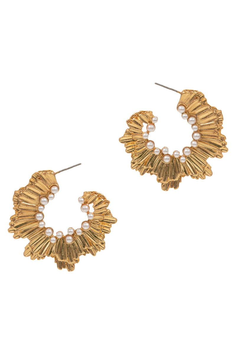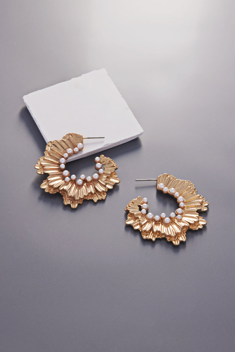 Flower Vintage Pearl Double Twisted Hoop Earrings