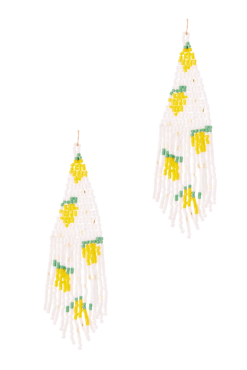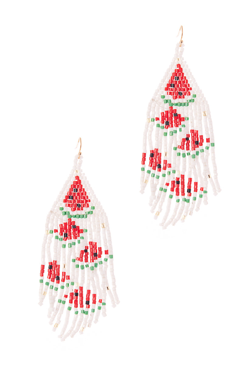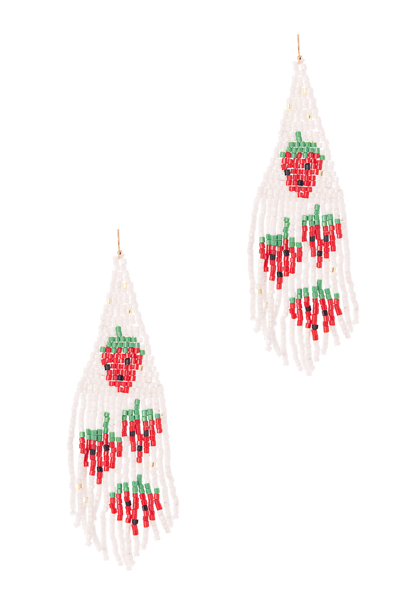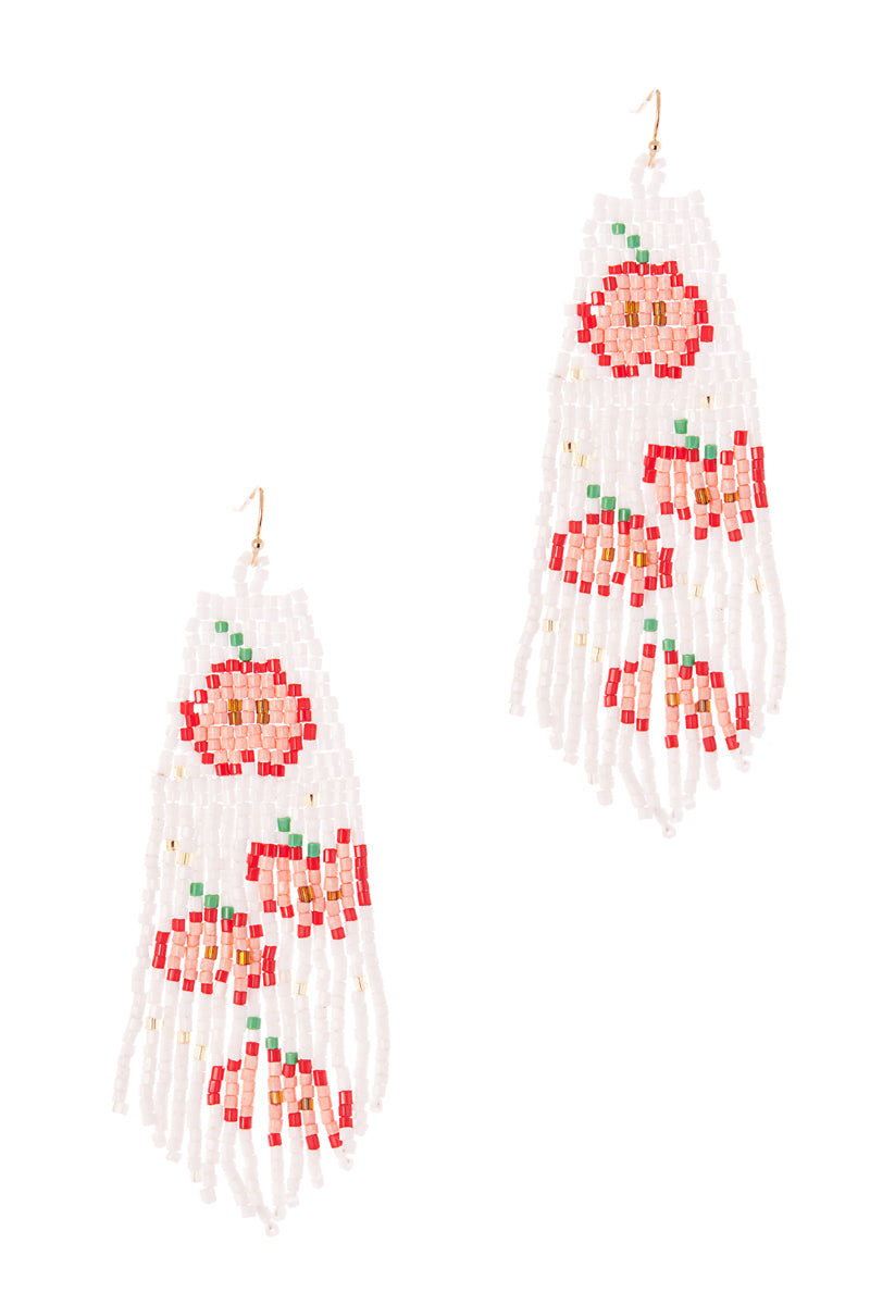 Handmade with precision, these earrings feature a stunning fruit pattern and are adorned with a tasteful tassel. Perfect for any occasion, these earrings are a must-have accessory for any fashion-forward individual.