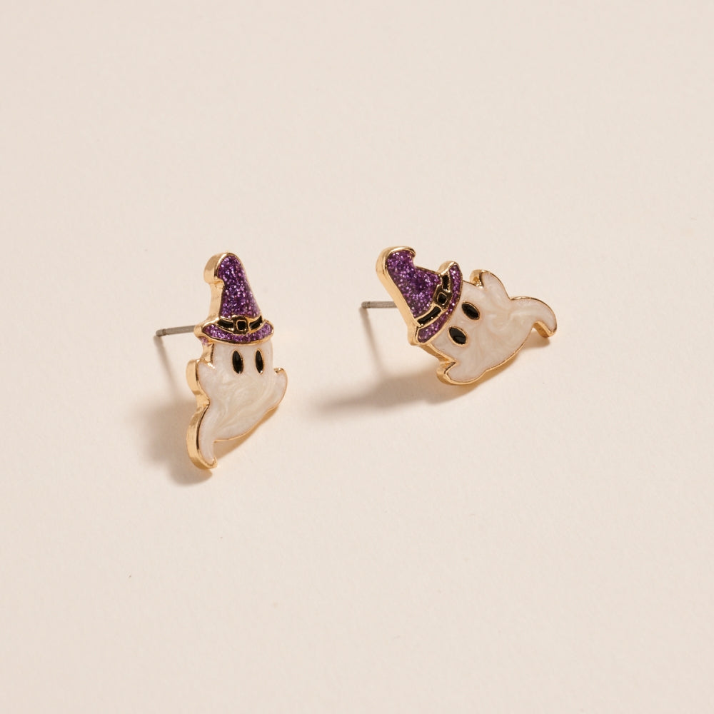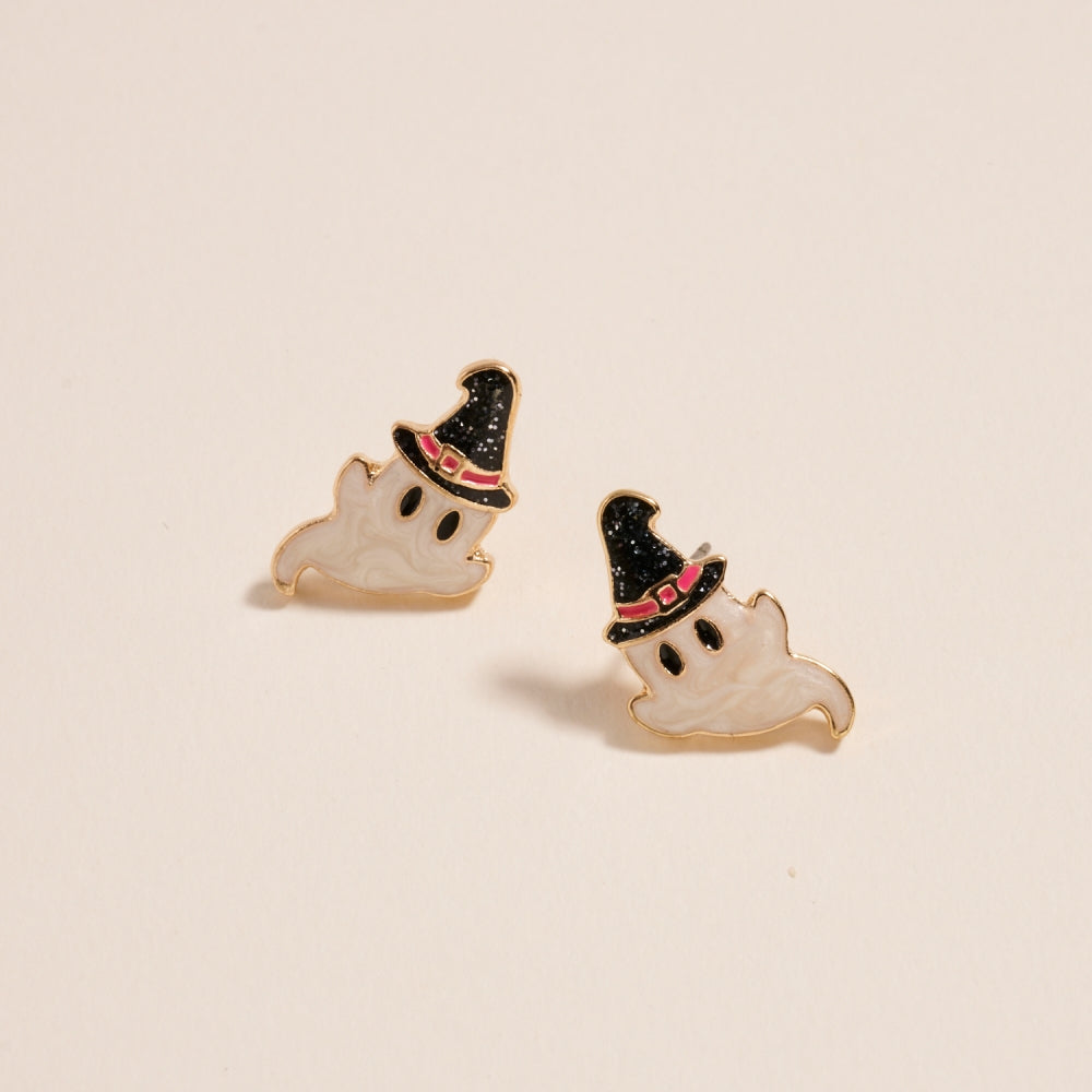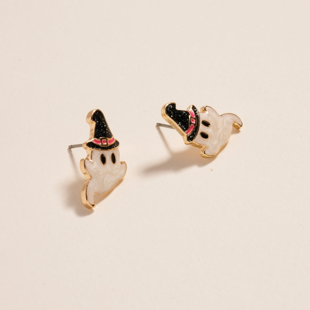 Ghost with Witch Hat Pearl Enamel Earrings Jewelry