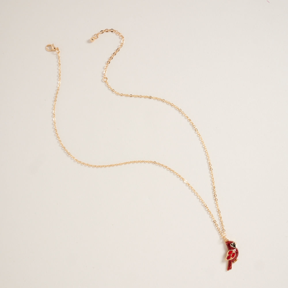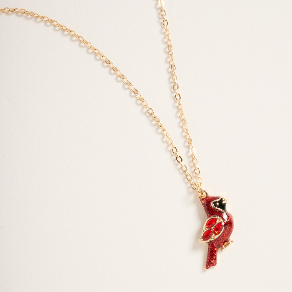 Glitter Cardinal Rhinestone Pendant Necklace