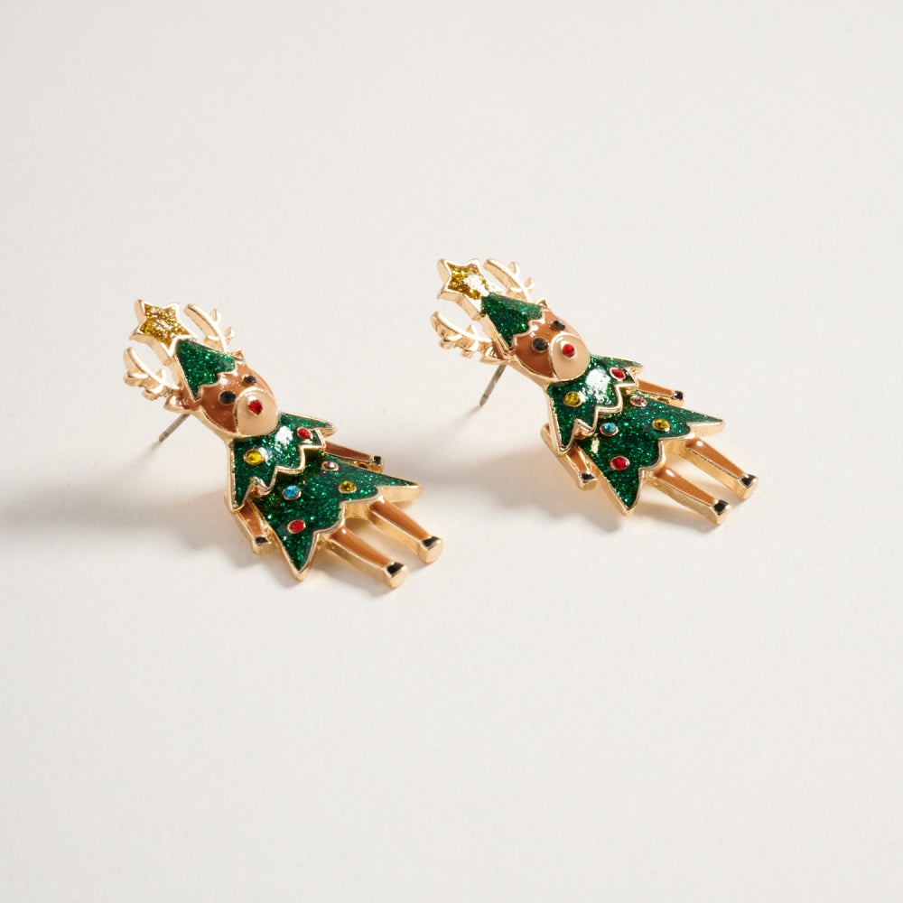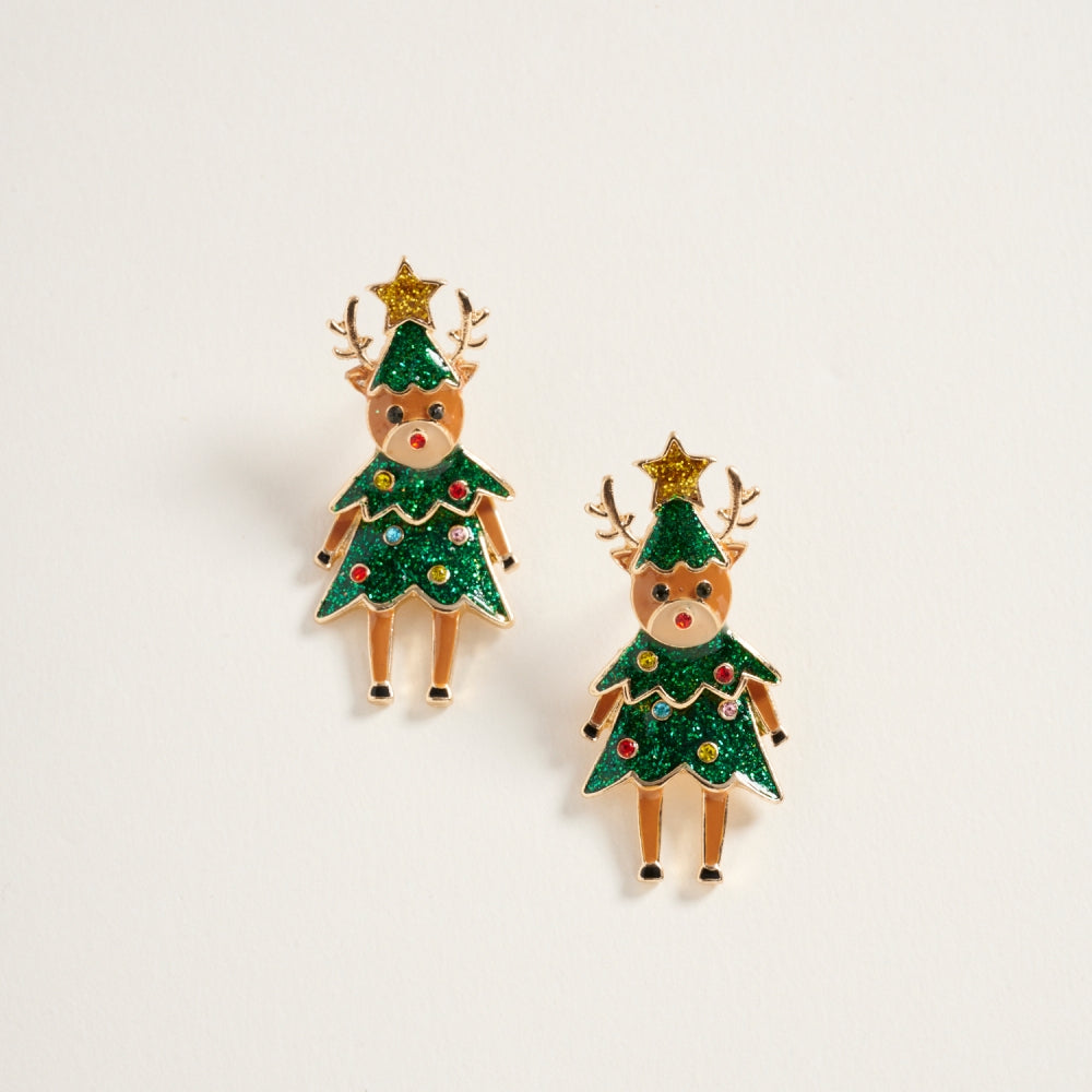 Bring a whimsical sparkle to your outfit with these glitter Christmas deer earrings. Rhinestone details add just the right amount of holiday glam.