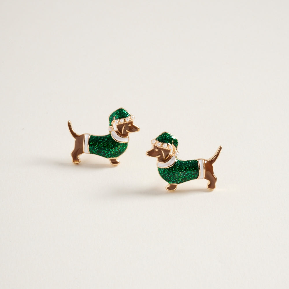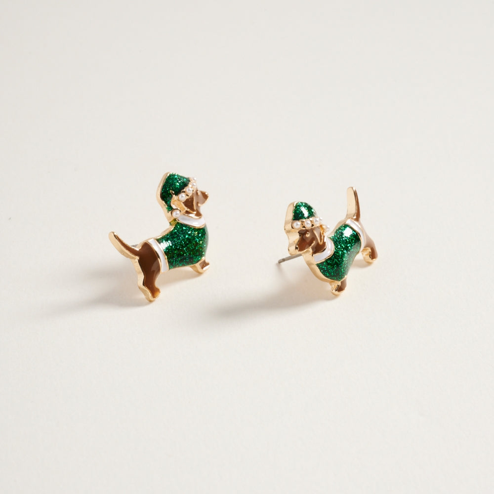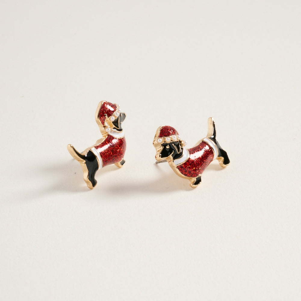 Whimsical glitter dog designs meet pearl details in this fun holiday earring pair. Lightweight and hypoallergenic for all-day comfort.