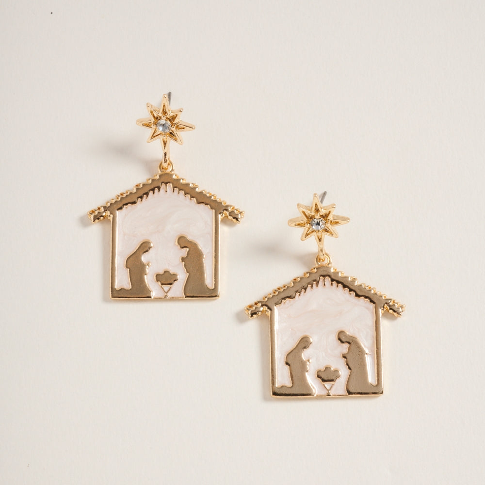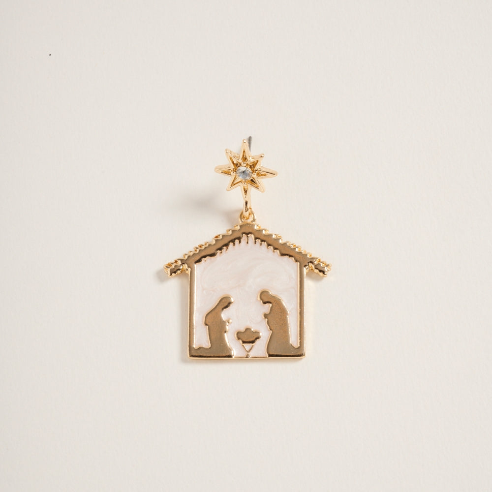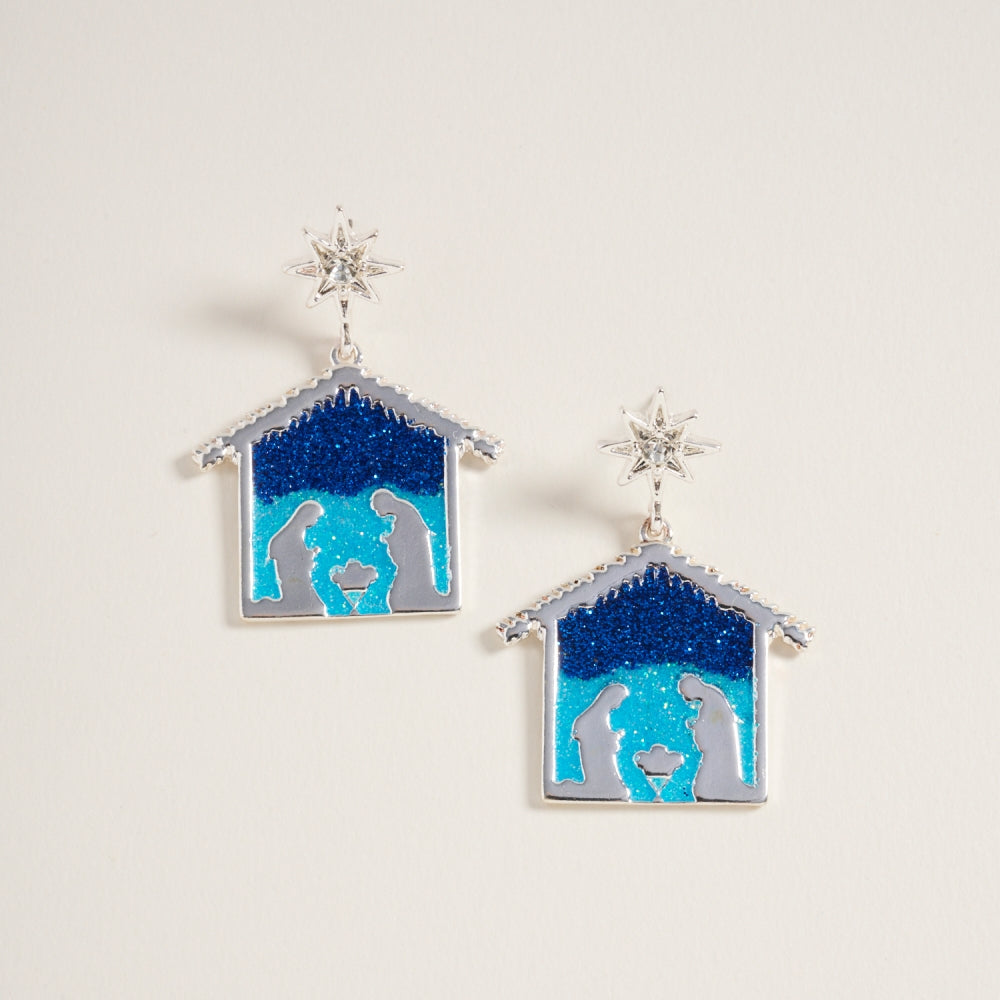 Celebrate the true meaning of Christmas with these sparkling nativity scene post earrings. Accented with fine glitter detailing, they beautifully capture the holy moment in festive style.