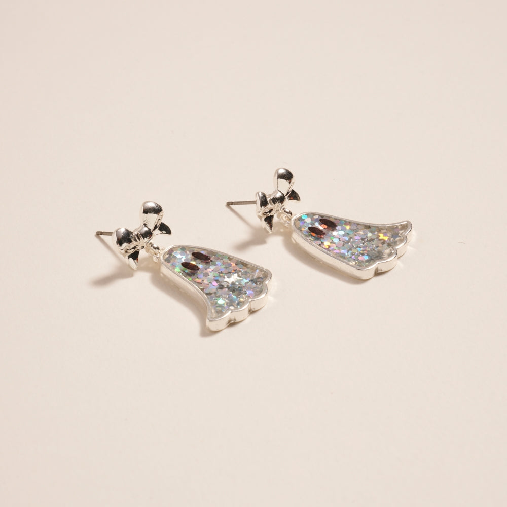 Glitter Ghost with Bow Post Earrings Halloween
