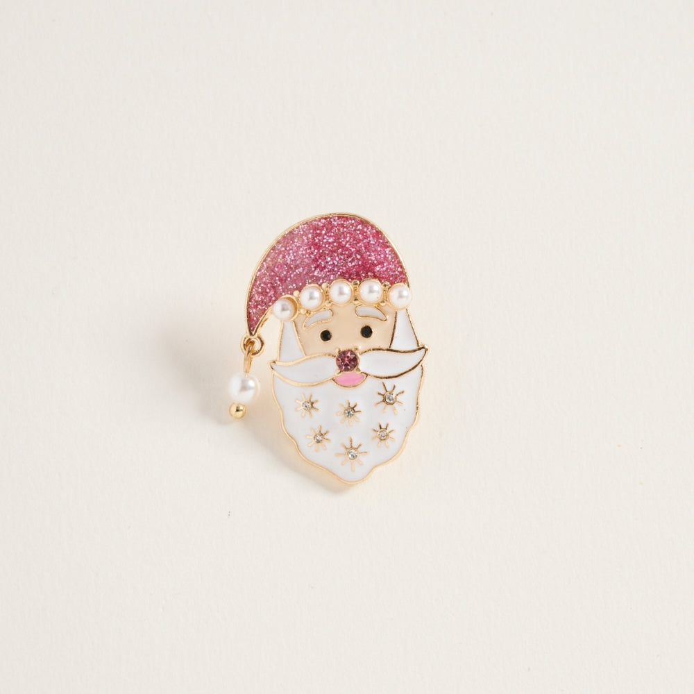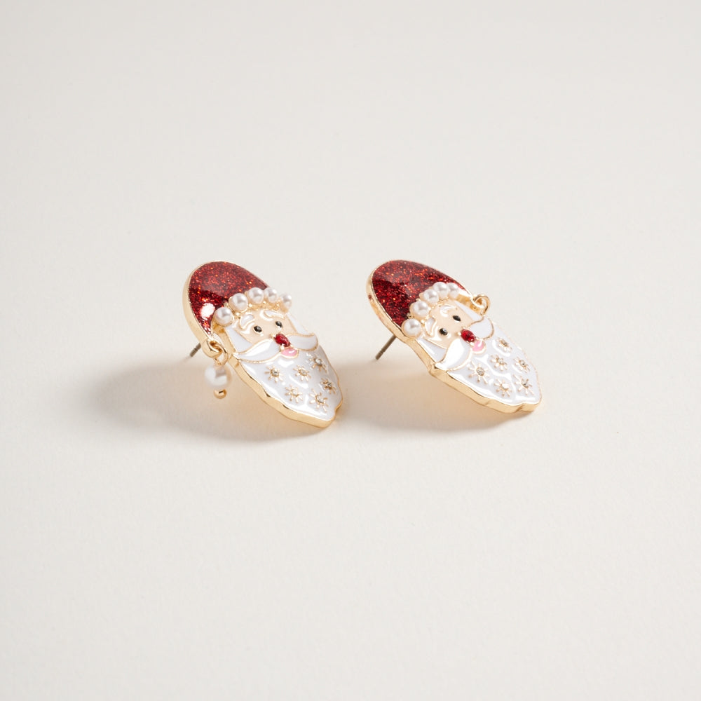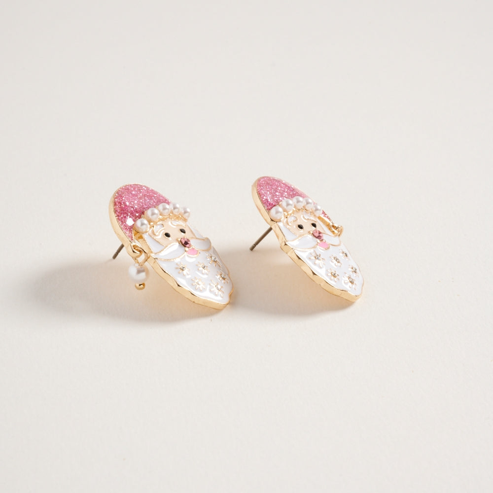 Glitter Santa Face Pearl Rhinestone Post Earrings