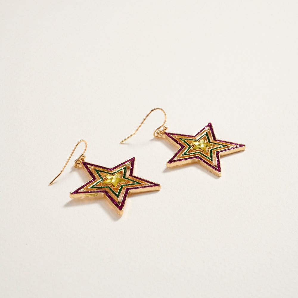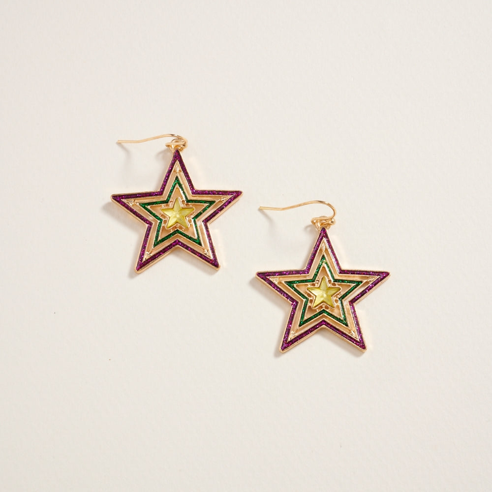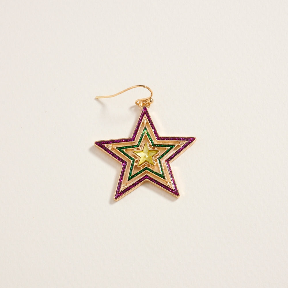 Add a twinkle to your Mardi Gras look with these glittered star hook earrings. With festive colors and lightweight comfort, these earrings are an easy way to express your fun-loving style throughout the celebration season.