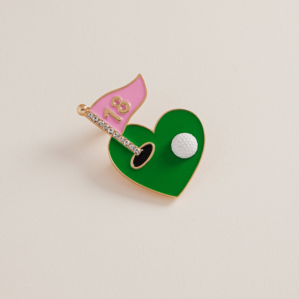 Show off your love of golf with this unique brooch pin. The rhinestone detail adds a bit of shine to the colorful enamel flag design, making it a fun gift or accessory.