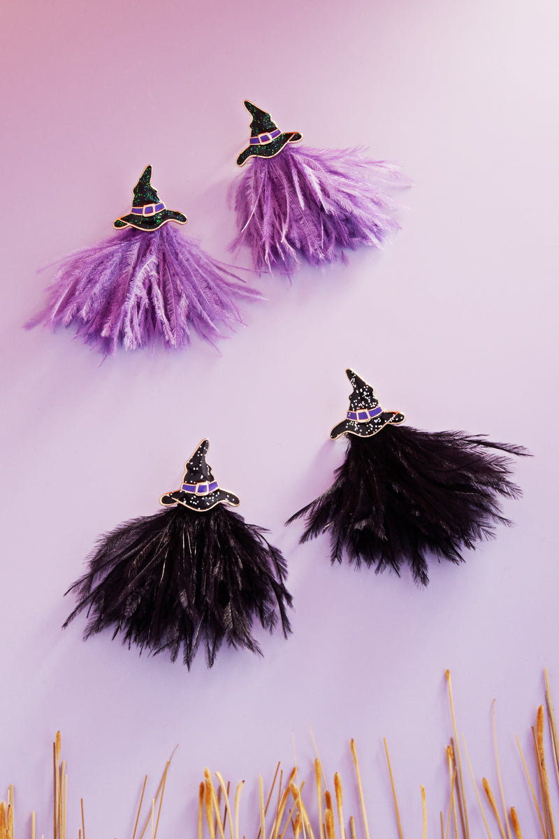Halloween Feather Tassel W Witch Hat Post Earrings