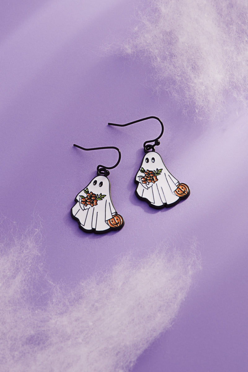 Halloween Ghost Flower Metal Enamel Hook Earrings