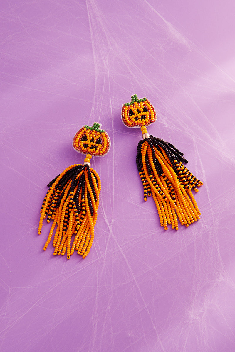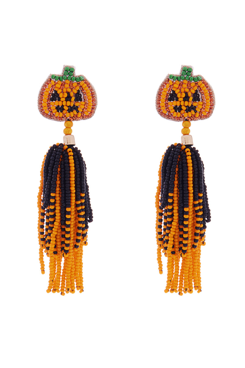 Halloween Pumpkin Indian Beads Post Earrings