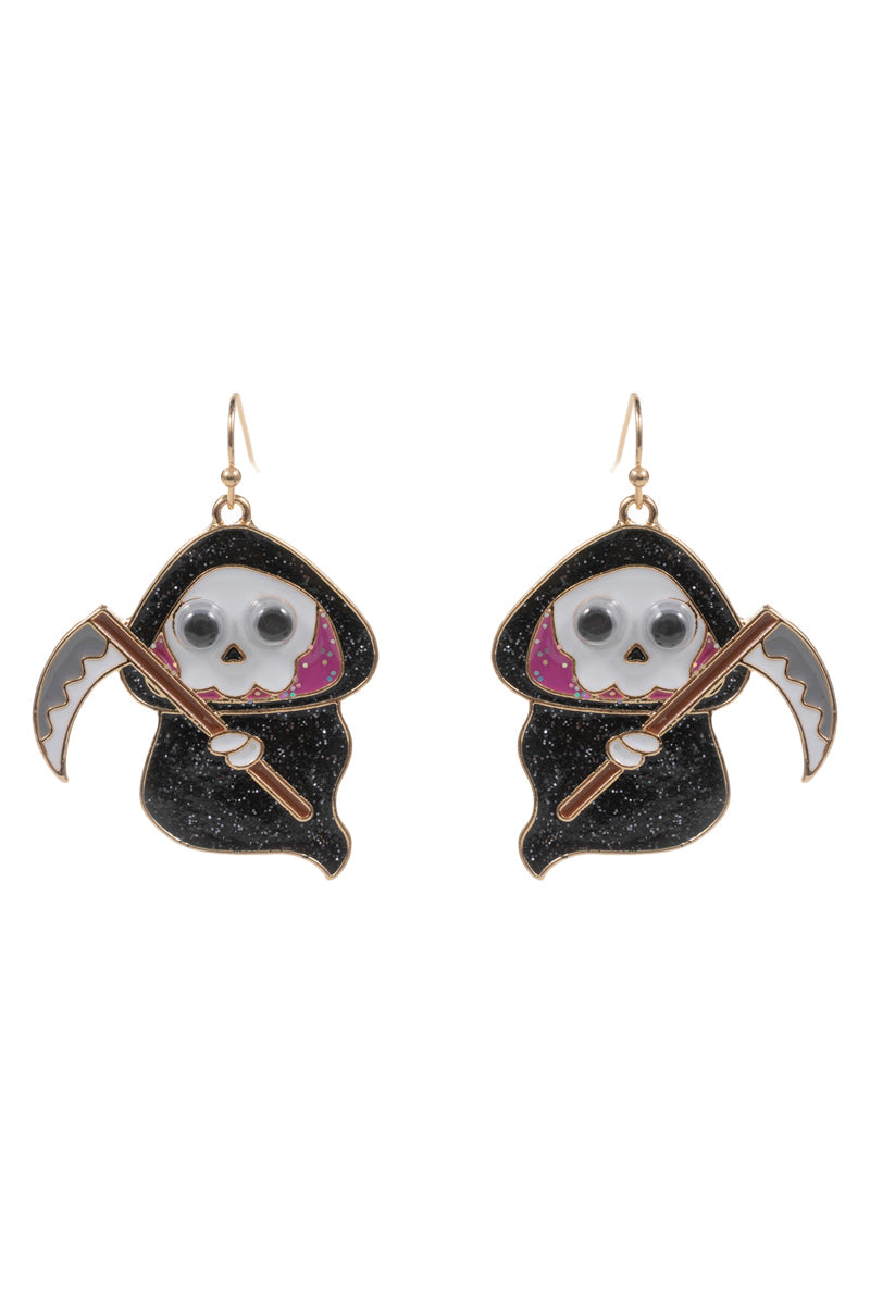 Halloween Reaper W Googly Eye Brass Hook Earrings